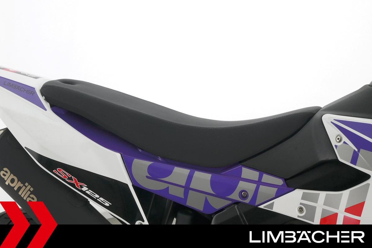 Eine Aprilia SX 125 E5+ in Topzustand u.a. mit Originalausstattung sowie LED-Blinkern und -Rücklicht.
