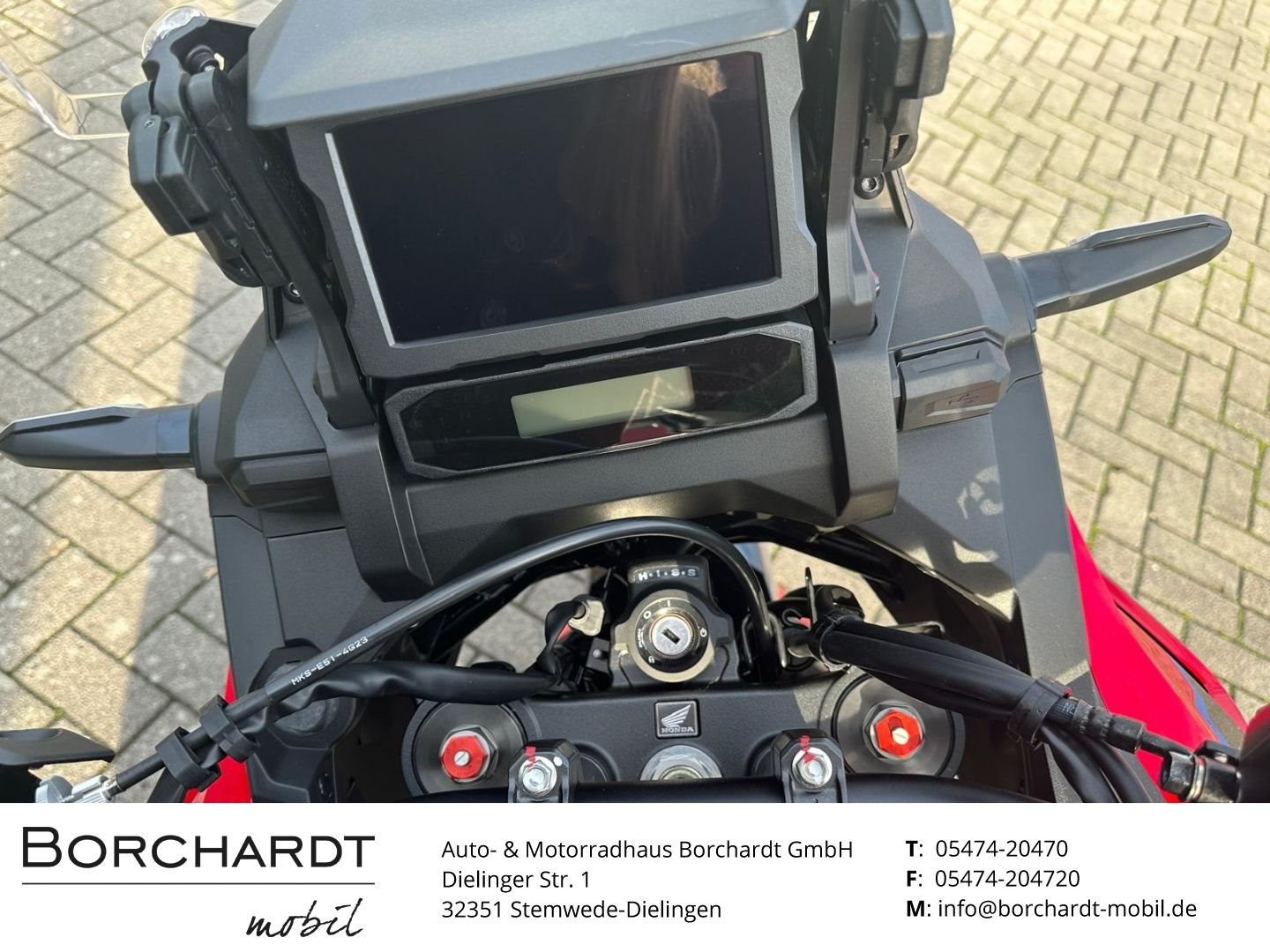 Ihre umfassende elektronische Ausstattung macht die Fahrt mit der Africa Twin angenehmer und sicherer. Auf jeder Strecke. Die siebenstufige Honda-Drehmomentkontrolle (HSTC), die von einer 6-Achsen-IMU gesteuert wird, überwacht die Hinterradtraktion und sorgt für eine sanfte Fahrt auf der Straße oder im Gelände. Die dreistufige Wheelie-Control wirkt dem Abheben des Vorderrads in der gewünschte Stärke entgegen und das ABS mit Kurvenfunktion sorgt für eine sichere Bremssteuerung. Mit URBAN, TOUR, GRAVEL und OFF-ROAD sind vier voreingestellte Standardfahrmodi vorhanden. Im USER-Modus können Fahrer sämtliche Parameter individuell festlegen.