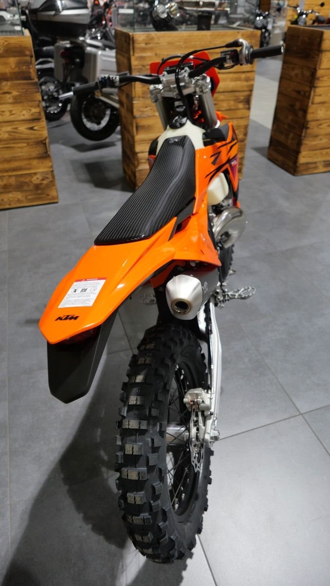 Die KTM 300 EXC wahrt ihren Legendenstatus als unumstrittene Königin im Enduro-Reich. Damit trägt sie nicht nur den renommiertesten Titel im hart umkämpften Hard Enduro-Bereich, sie bleibt in Bezug auf 2-Takt-Raffinesse, Temperament und Spaß auch weiterhin das Maß aller Dinge. Mit seinem zuverlässigen 2-Takt-Motor mit Kraftstoffeinspritzung, der ein enormes Drehmoment im unteren Drehzahlbereich und eine rasante Höchstgeschwindigkeit liefert, ist es der ideale Begleiter für anspruchsvolles Gelände. Preise inkl. 19% MwSt, Überführungs- und Nebenkosten in Höhe von € 495,00.