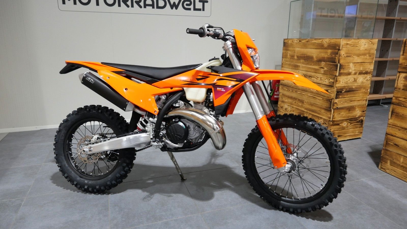 Die KTM 300 EXC wahrt ihren Legendenstatus als unumstrittene Königin im Enduro-Reich. Damit trägt sie nicht nur den renommiertesten Titel im hart umkämpften Hard Enduro-Bereich, sie bleibt in Bezug auf 2-Takt-Raffinesse, Temperament und Spaß auch weiterhin das Maß aller Dinge. Mit seinem zuverlässigen 2-Takt-Motor mit Kraftstoffeinspritzung, der ein enormes Drehmoment im unteren Drehzahlbereich und eine rasante Höchstgeschwindigkeit liefert, ist es der ideale Begleiter für anspruchsvolles Gelände. Preise inkl. 19% MwSt, Überführungs- und Nebenkosten in Höhe von € 495,00.