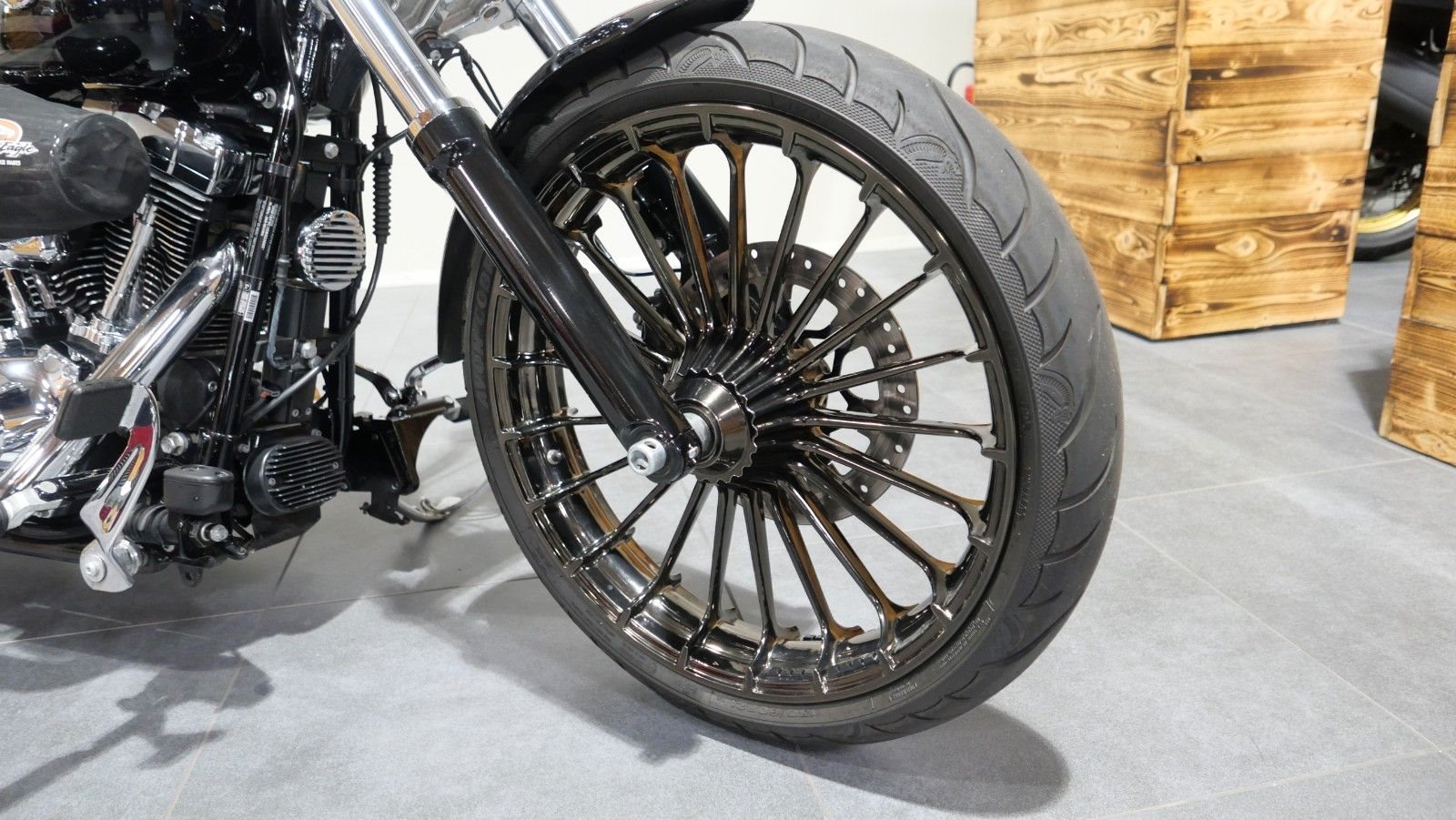 - Der breiteste Hinterreifen der serienmäßigen Harleys kommt gut zur Geltung