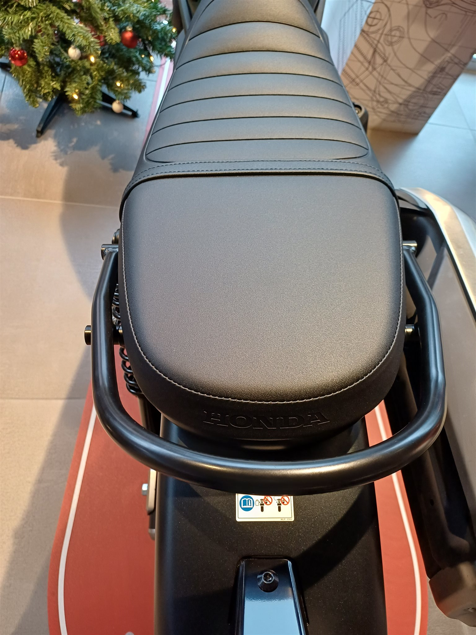 Die ikonische Optik beginnt beim 12-l-Kraftstofftank: glatt, rund, perfekt geformt und mit bequemen Gummikniepolstern. Alle Bauteile, bei denen dies möglich ist Motor, Rahmen und Fahrwerk sind tiefschwarz lackiert, was zum minimalistischen Erscheinungsbild beiträgt. Wie in den guten alten Zeiten sind die Gabeltauchrohre durch Faltenbälge aus Gummi geschützt. Der hohe und ausladende Lenker ermöglicht ein ausgezeichnetes Handling und harmoniert bestens mit dem hochgelegten Auspuffschalldämpfer mit dem perforierten Edelstahl-Hitzeschild und den Doppelrohren, die genau an der richtigen Stelle sitzen.