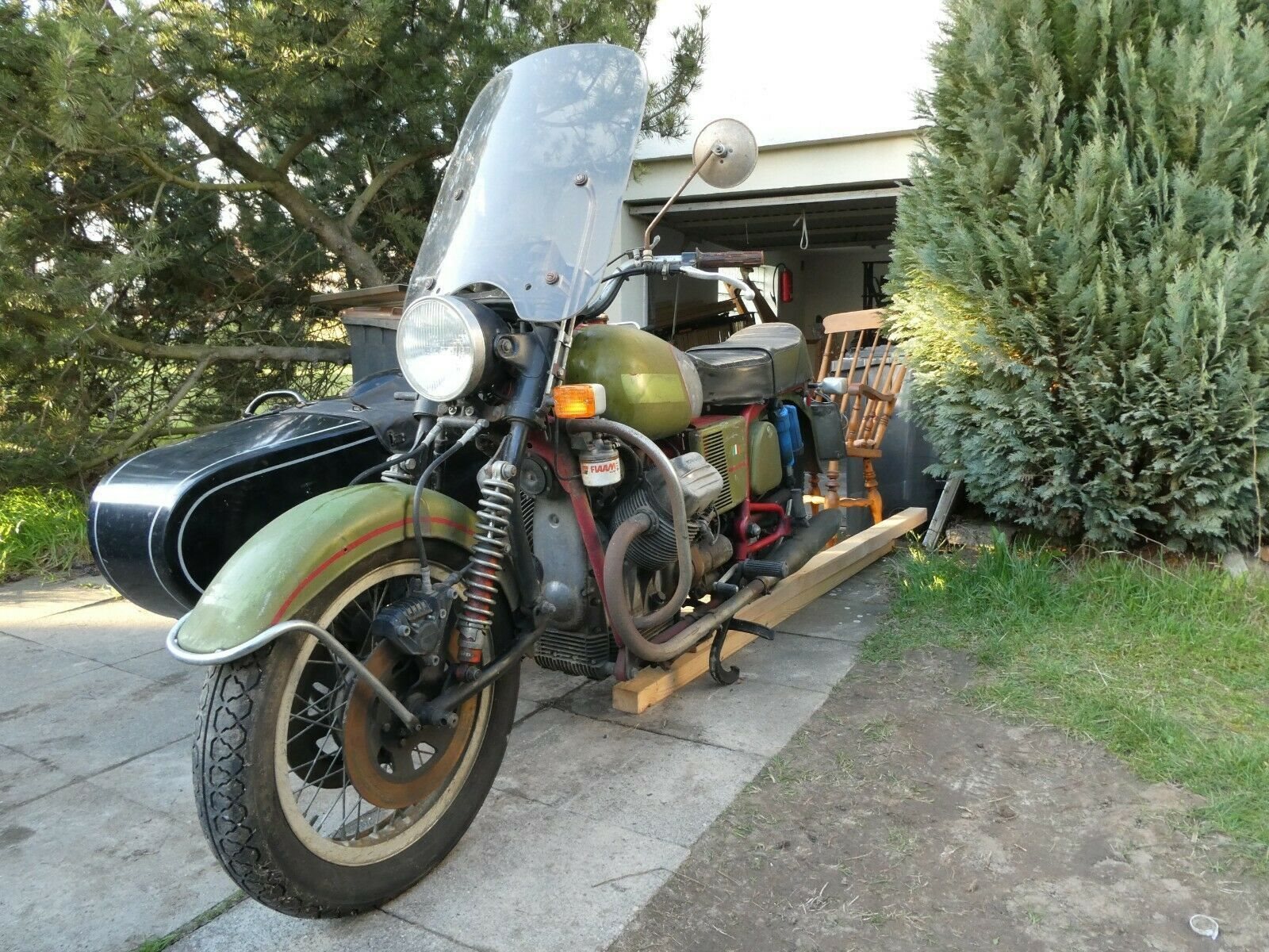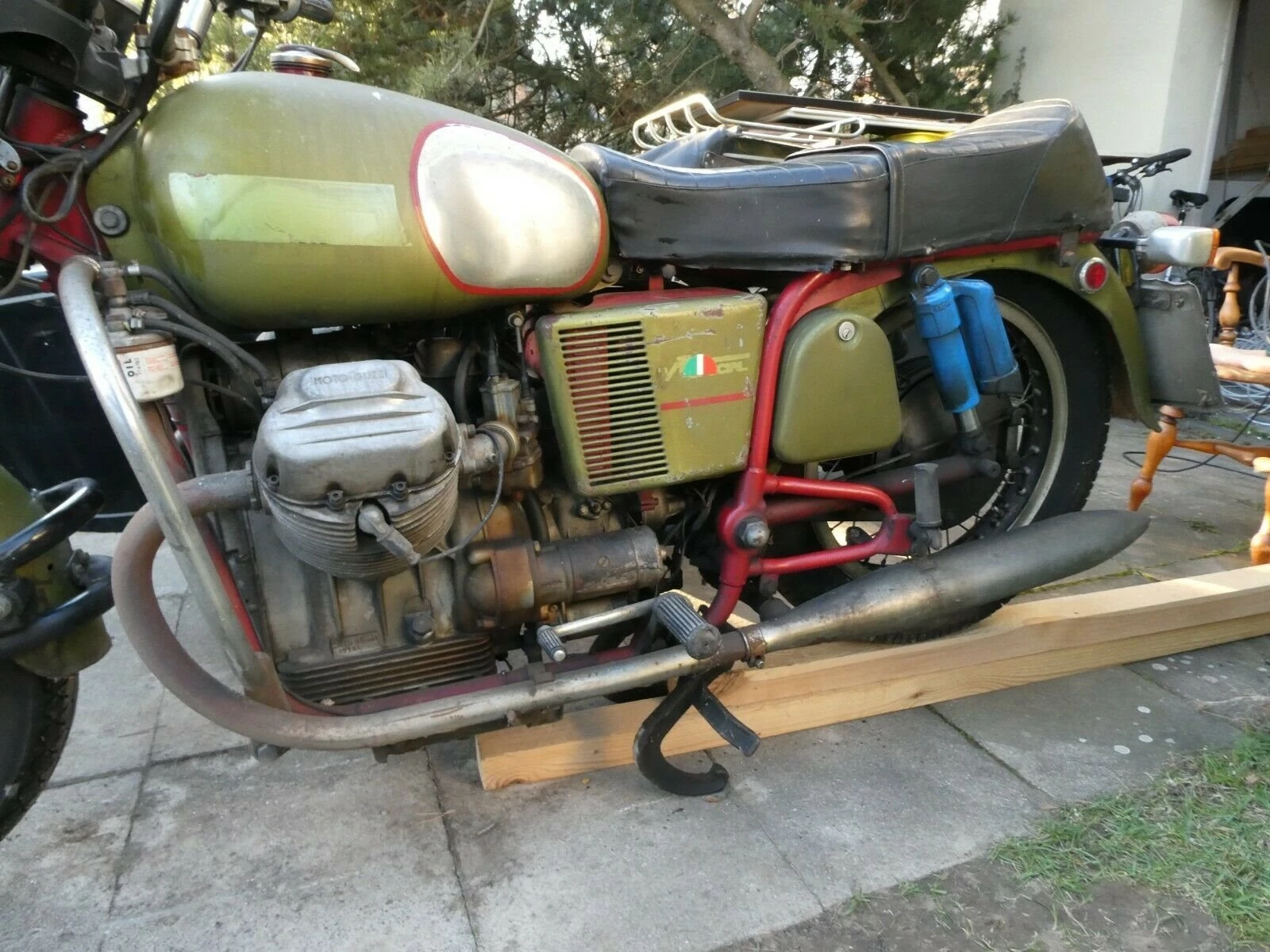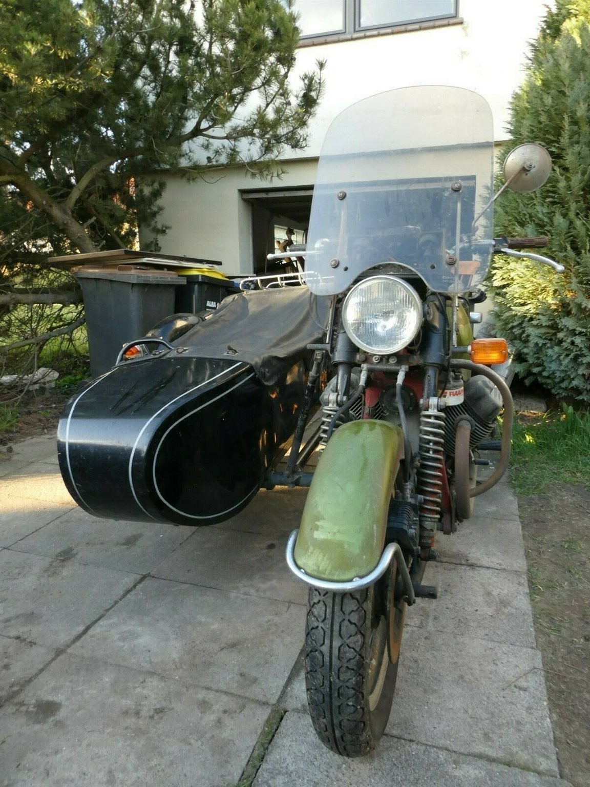 Moto Guzzi v7 Sport mit Beiwagen Ural 1978 Oldtimer Motorrad.
