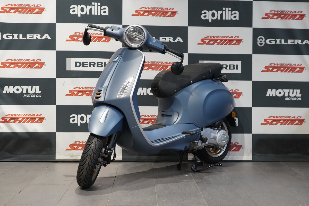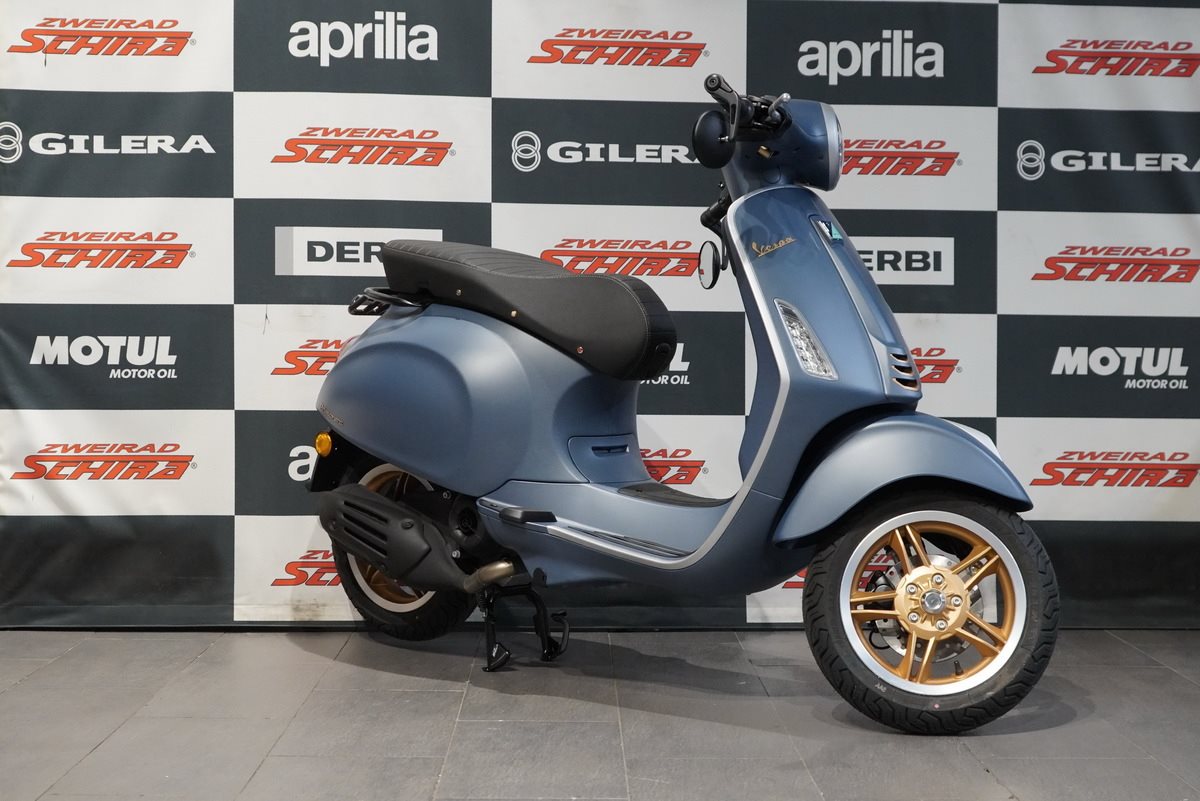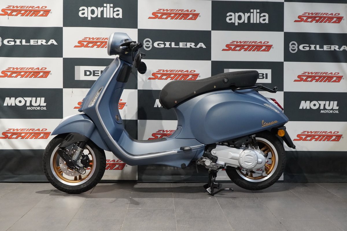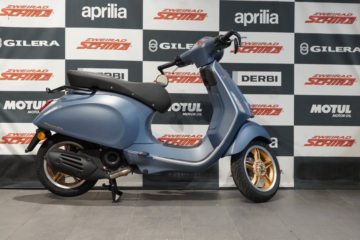Die Vespa Primavera Officina 8 bringt das Erbe der Vespa mit Eleganz und einem modernen Touch neu auf die Straße. Die intensive blaue Lackierung ist von den Industriemaschinen in der historischen Werkstatt 'Officina 8' des Piaggio Werks inspiriert. Eine Hommage an die Tradition, die zu einem unverwechselbaren Symbol für Stärke und Identität geworden ist. Die metallenen Details, die polierten Messingnieten und die Kontrastnähte auf dem Sattel zeugen von der Genialität, Sorgfalt und Leidenschaft, die Vespa seit jeher auszeichnet.