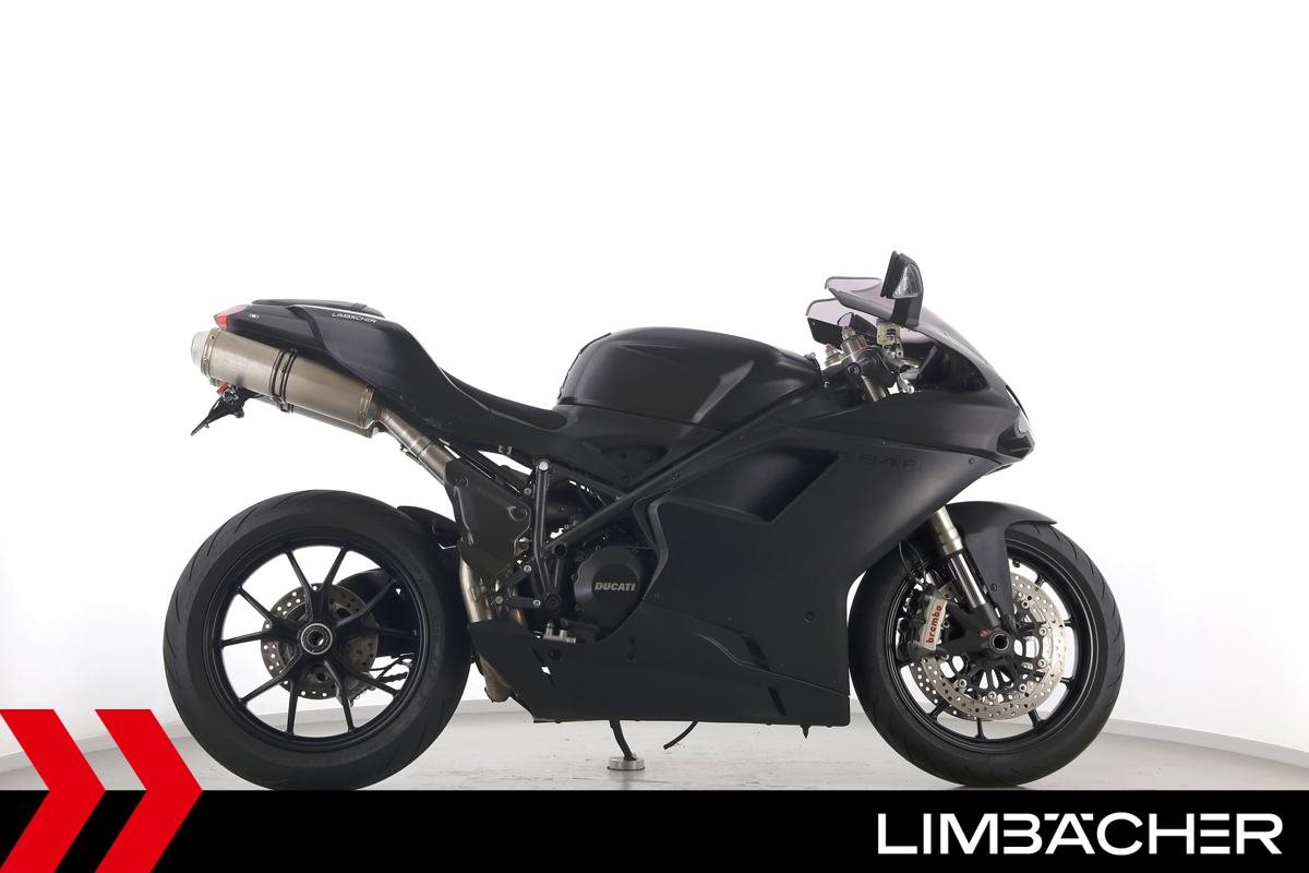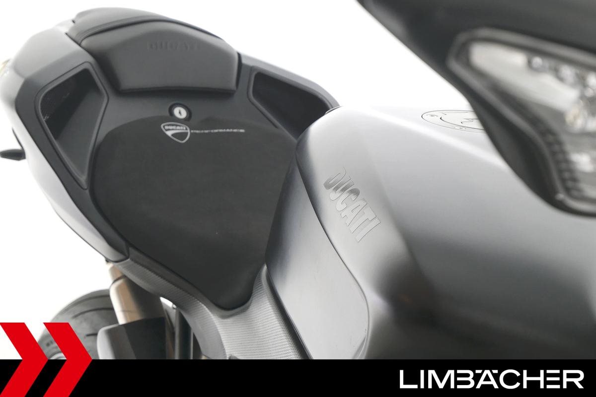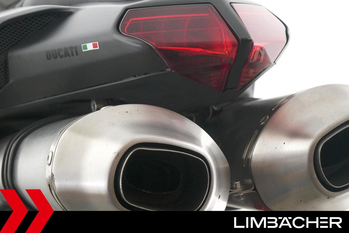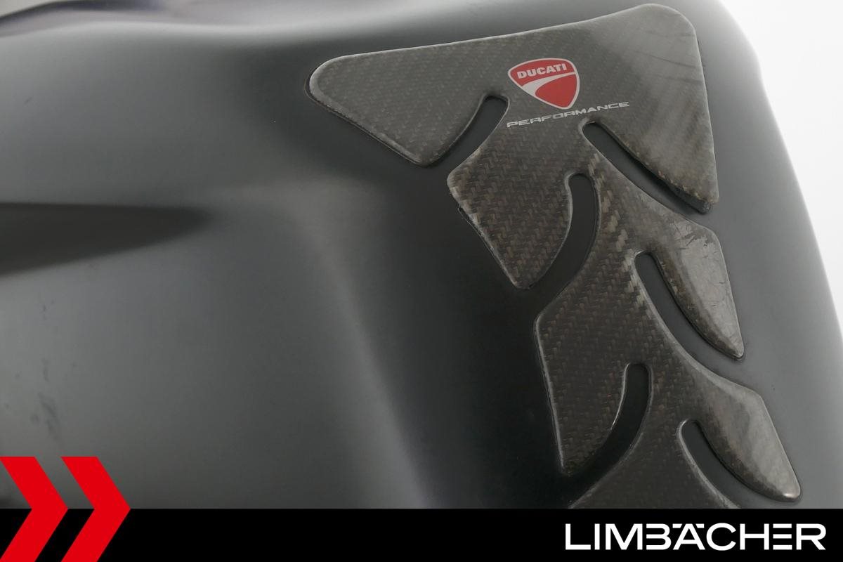 Eine Ducati 848 EVO in gebrauchtem Zustand u.a. mit kurzem Kennzeichenhalter und LED-Blinkern hinten.