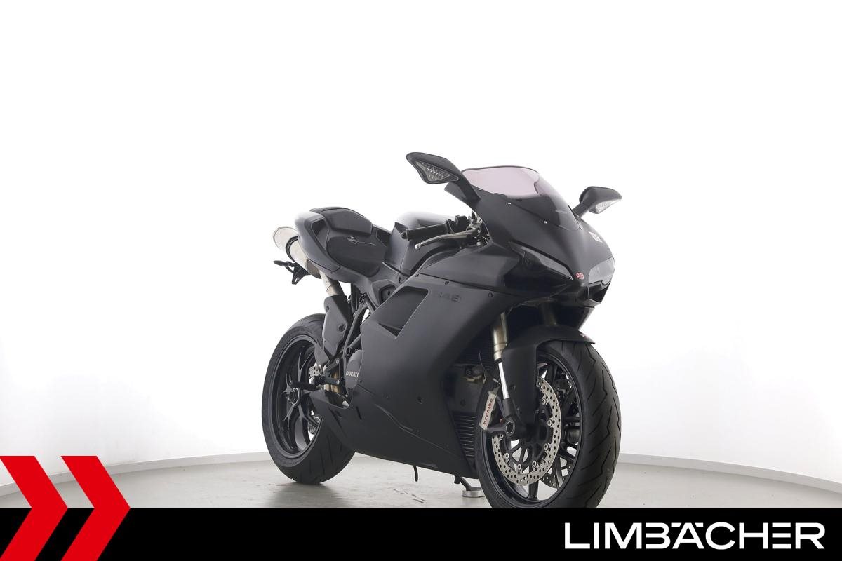 Eine Ducati 848 EVO in gebrauchtem Zustand u.a. mit kurzem Kennzeichenhalter und LED-Blinkern hinten.
