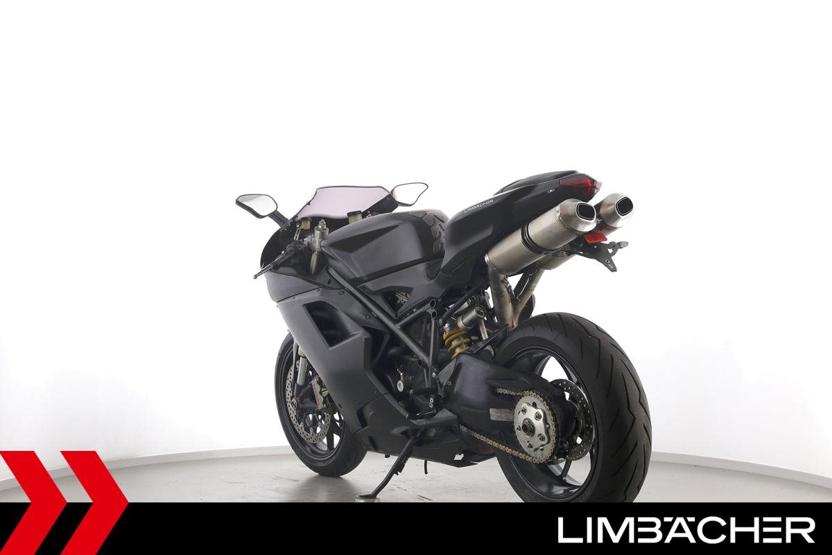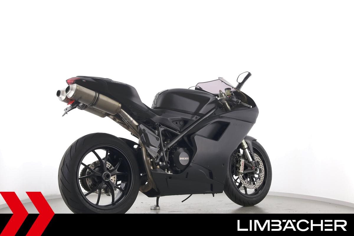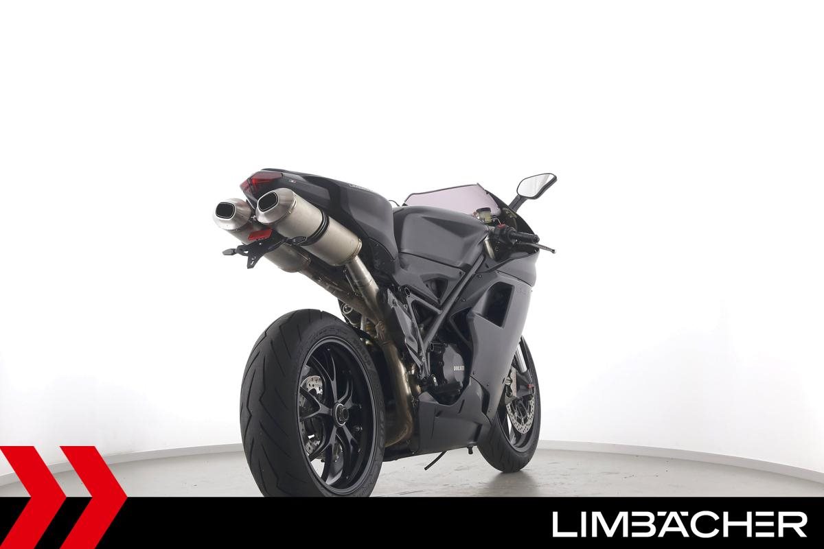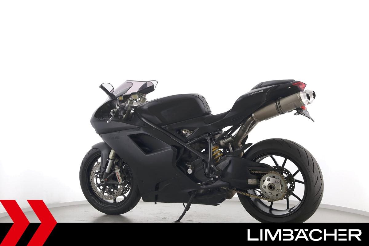 Eine Ducati 848 EVO in gebrauchtem Zustand u.a. mit kurzem Kennzeichenhalter und LED-Blinkern hinten.