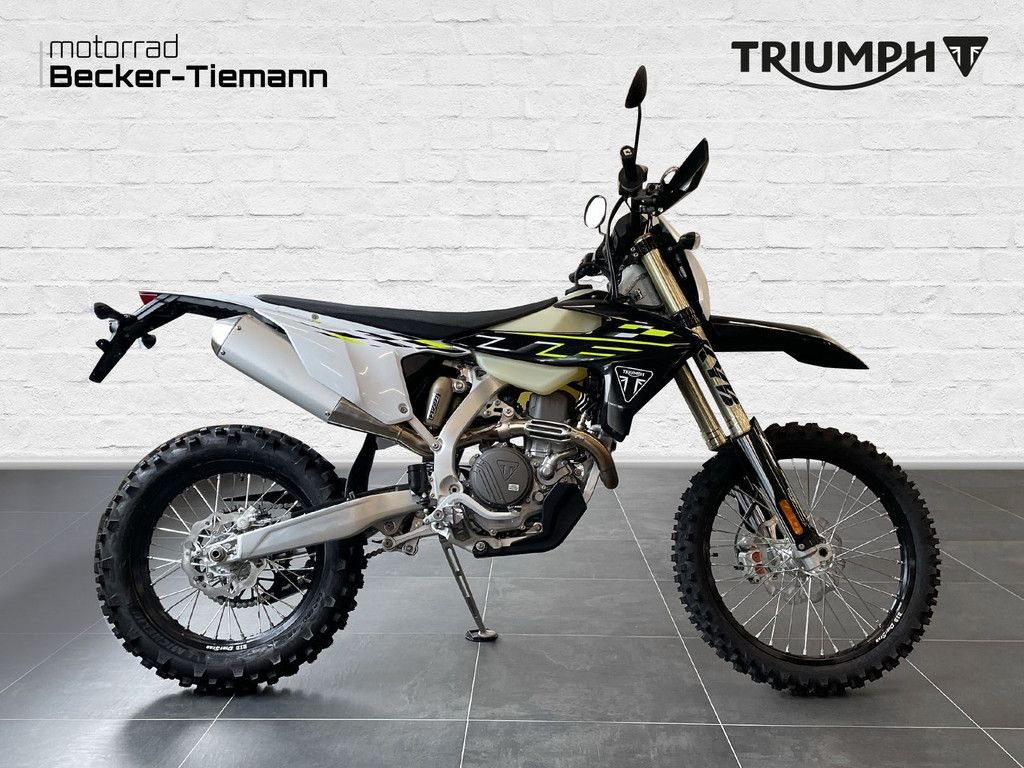 KYB 48 mm Federgabel, Zug- und Druckstufen Verstellung, 300 mm Federweg, KYB-Federbein, Druckstufenverstellung (High- und Lowspeed), Zugstufenverstellung, 313 mm Federweg, D.I.D DirtStar Felgen, Michelin Enduro 2 Reifen, ProTaper Evo Lenker, Neken Gabelbrücken, offene Leistung für Sportzwecke: 58.6 PS und 49.3 Nm Drehmoment