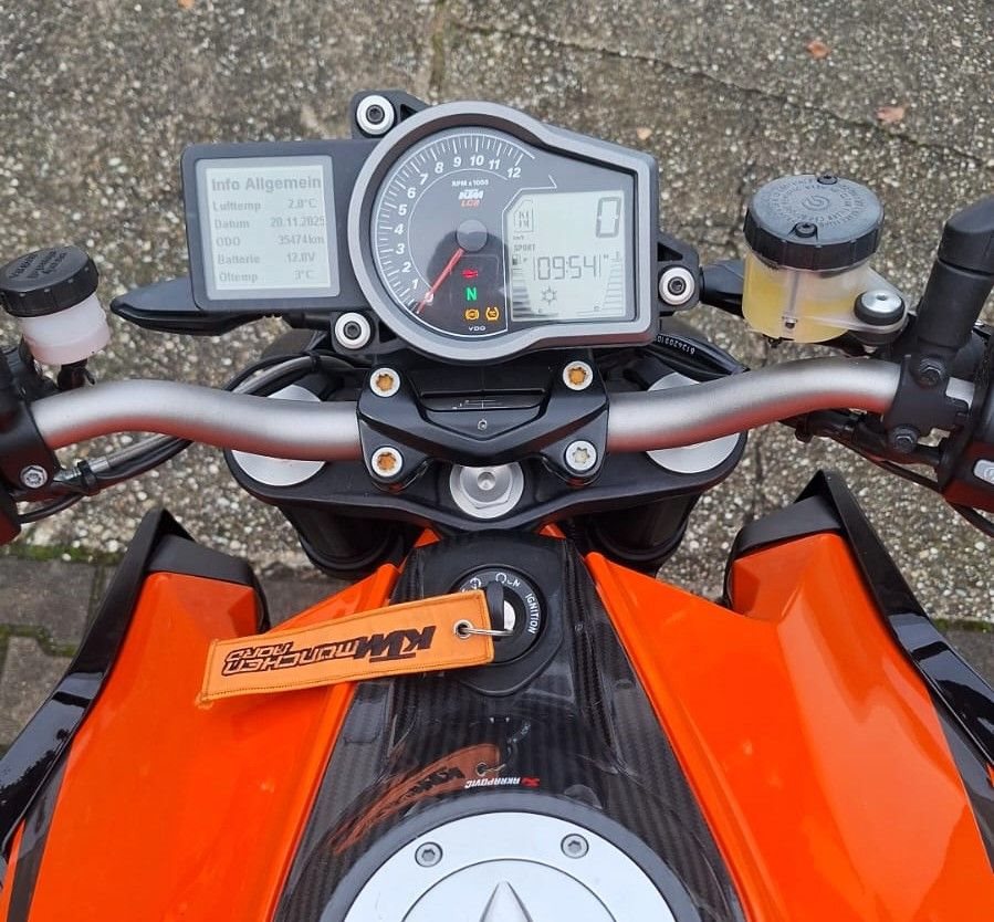 Zum Verkauf steht unsere KTM 1290 Super Duke R mit Erstzulassung im Juni 2014. Das Fahrzeug ist unfallfrei und befindet sich den Kilometern entsprechend in einem gepflegten Zustand. Die Duke wurde regelmäßig beim KTM Händler gewartet, kürzlich haben wir in unserer KTM Vertragswerkstatt die große 30.000km Inspektion neu gemacht. Auch alle Verschleißteile befinden sich in gutem Zustand. Das unten aufgeführte, hochwertige Zubehör im Preis inbegriffen Zu unseren Geschäftszeiten können Sie das Fahrzeug besichtigen und nach vorheriger Absprache auch Probefahren. Bei weiteren Fragen stehen wir gerne zur Verfügung.