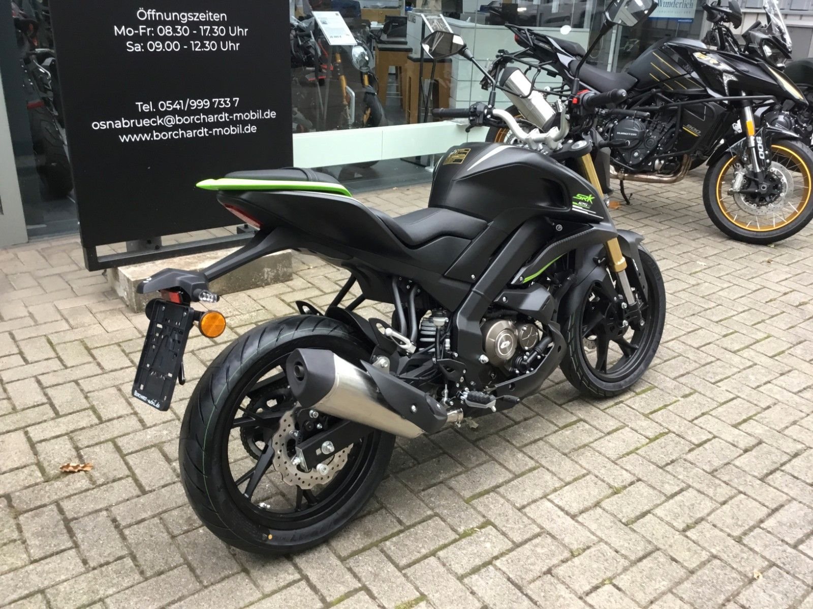 - TFT-Farbdisplay Das moderne TFT-Display der SRK 125 S liefert alle relevanten Daten wie Geschwindigkeit, Drehzahl, Trip-Master, Tankinhalt, Uhrzeit und Ganganzeige klar und übersichtlich. Mit dem Tag/Nacht-Modus passt sich das Display automatisch an das Umgebungslicht an.
