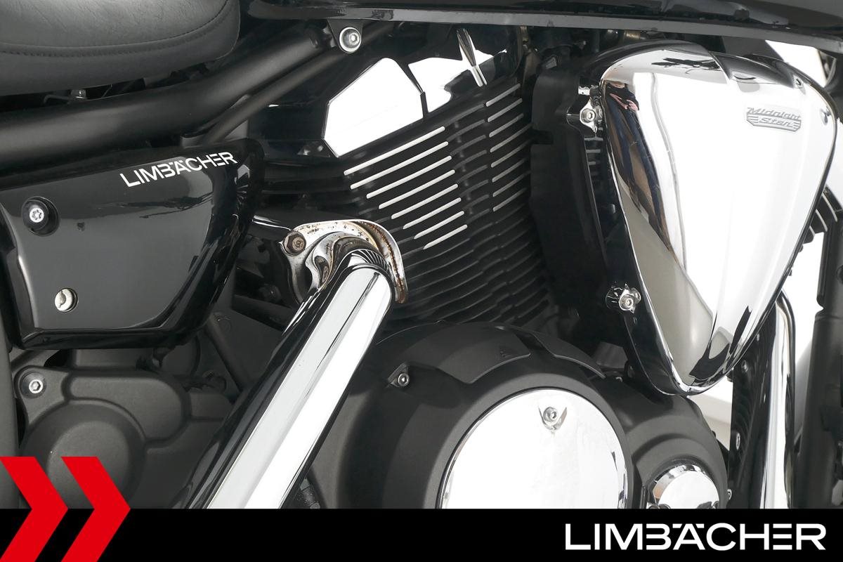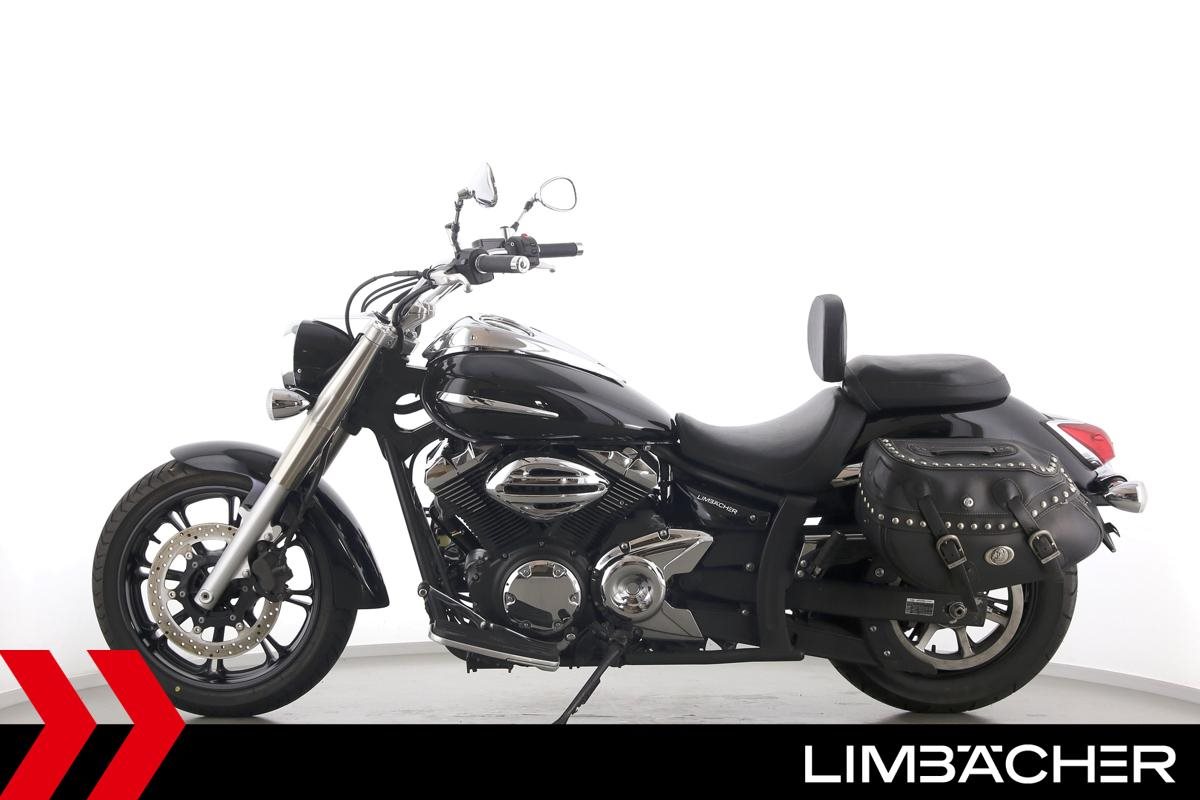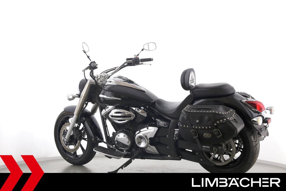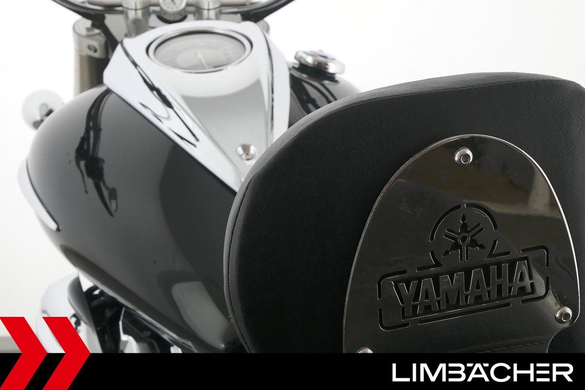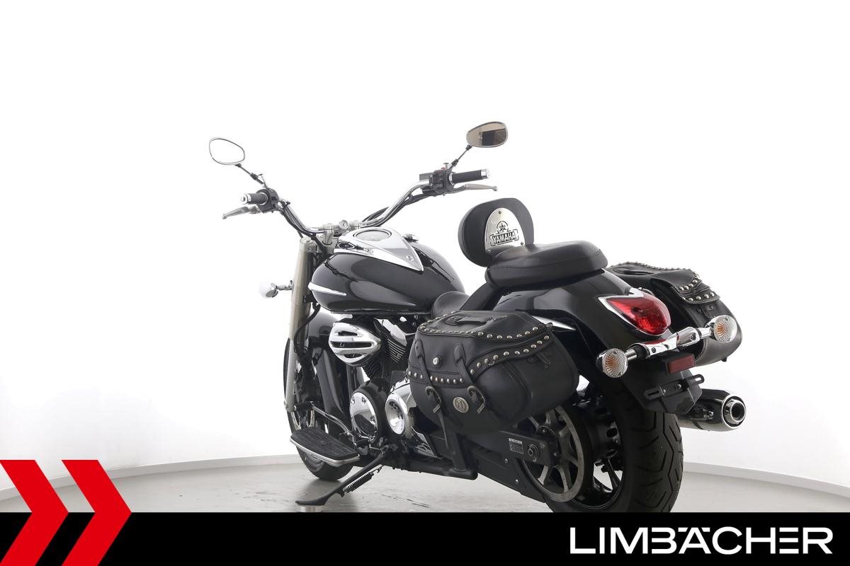 Eine Yamaha XVS 950 A Midnight Star aus zweiter Hand in gepflegtem Zustand mit Hepco&Becker-Packtaschensystem und Rückenlehne.