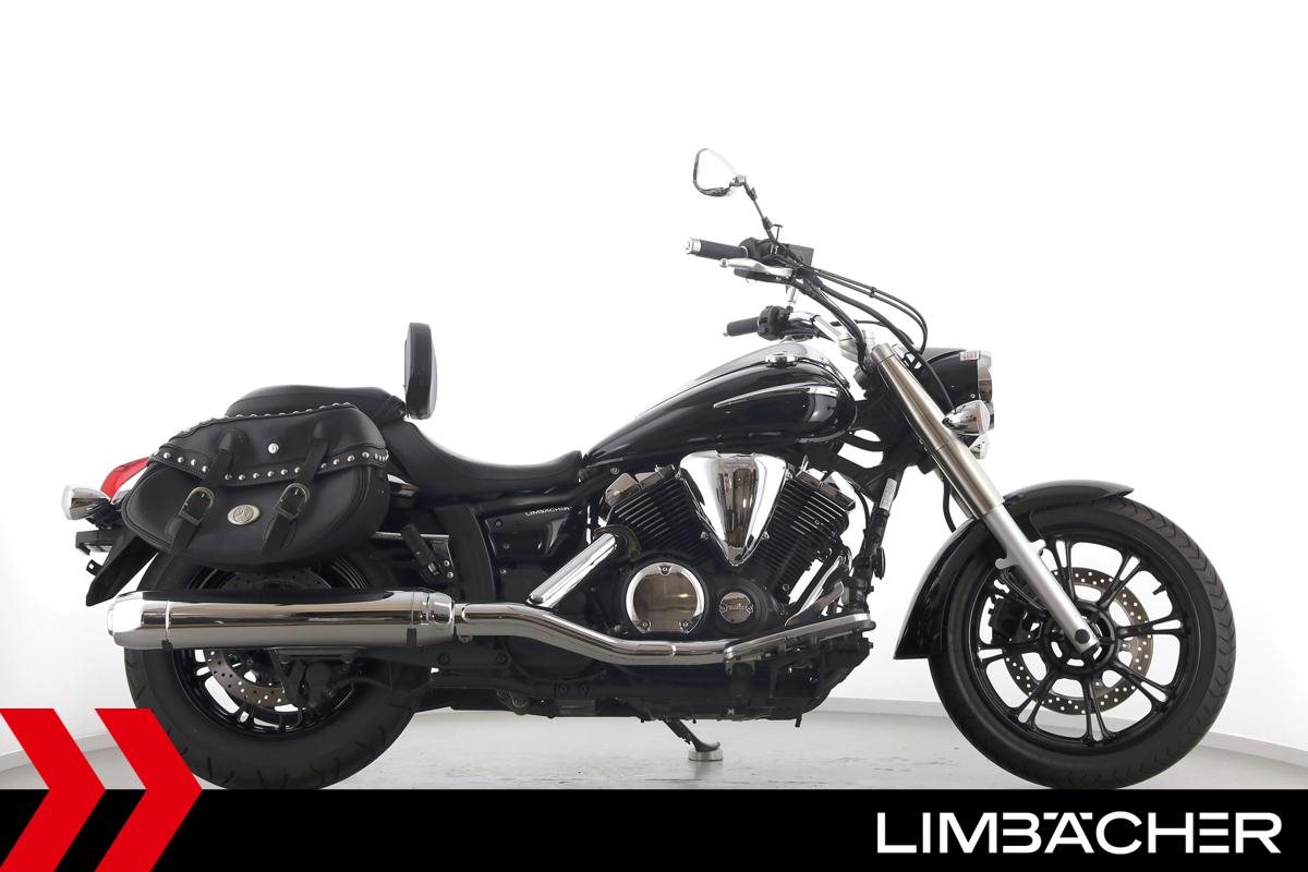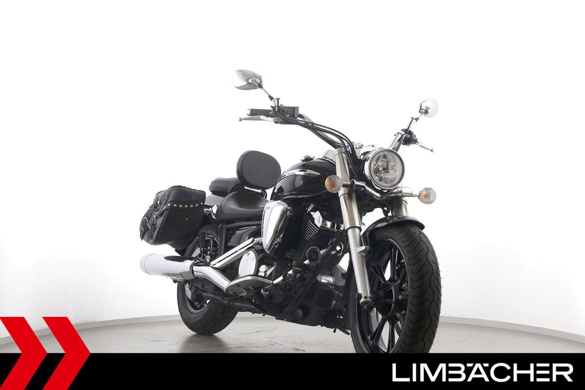 Eine Yamaha XVS 950 A Midnight Star aus zweiter Hand in gepflegtem Zustand mit Hepco&Becker-Packtaschensystem und Rückenlehne.