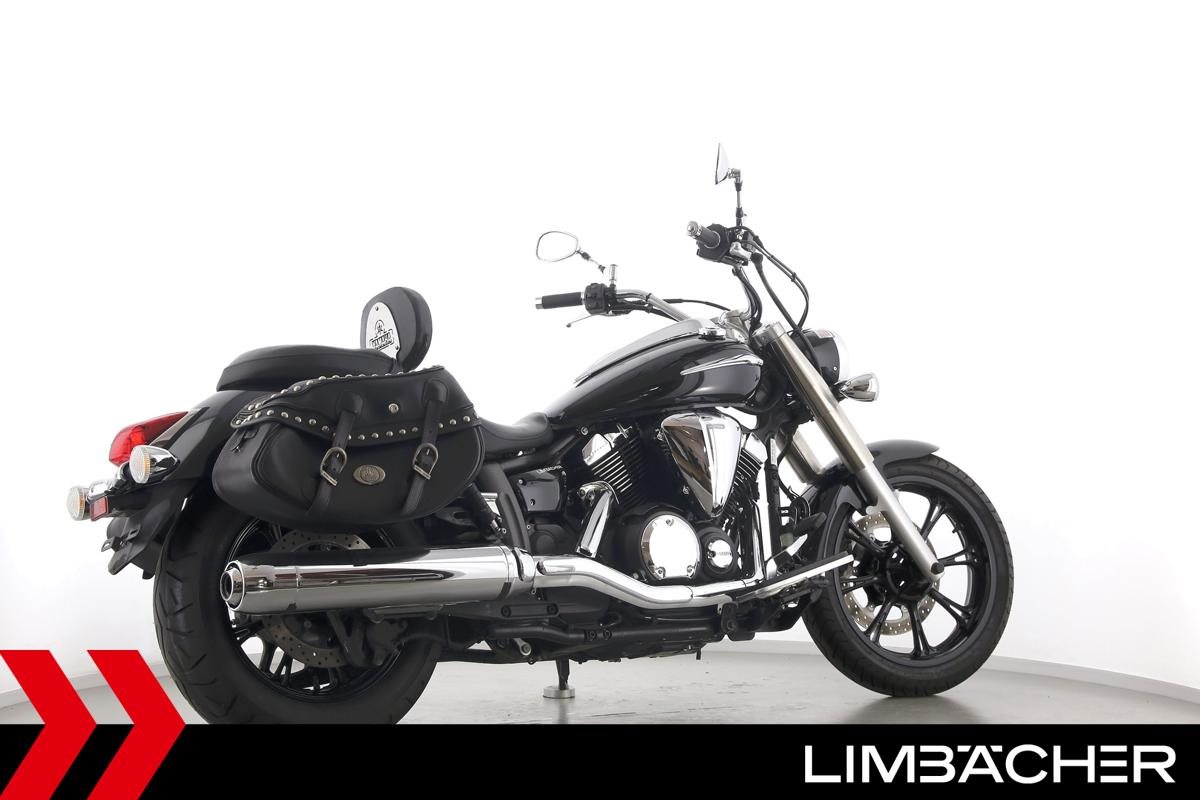 Eine Yamaha XVS 950 A Midnight Star aus zweiter Hand in gepflegtem Zustand mit Hepco&Becker-Packtaschensystem und Rückenlehne.
