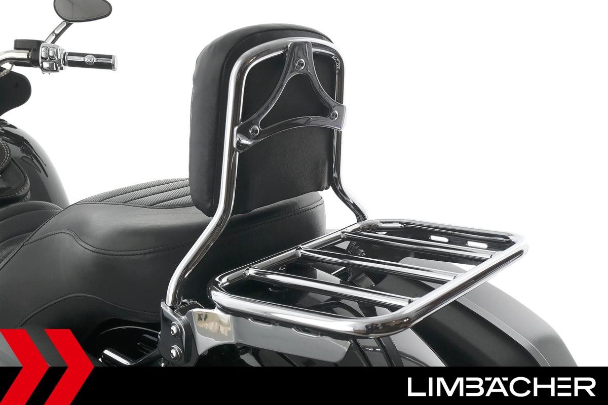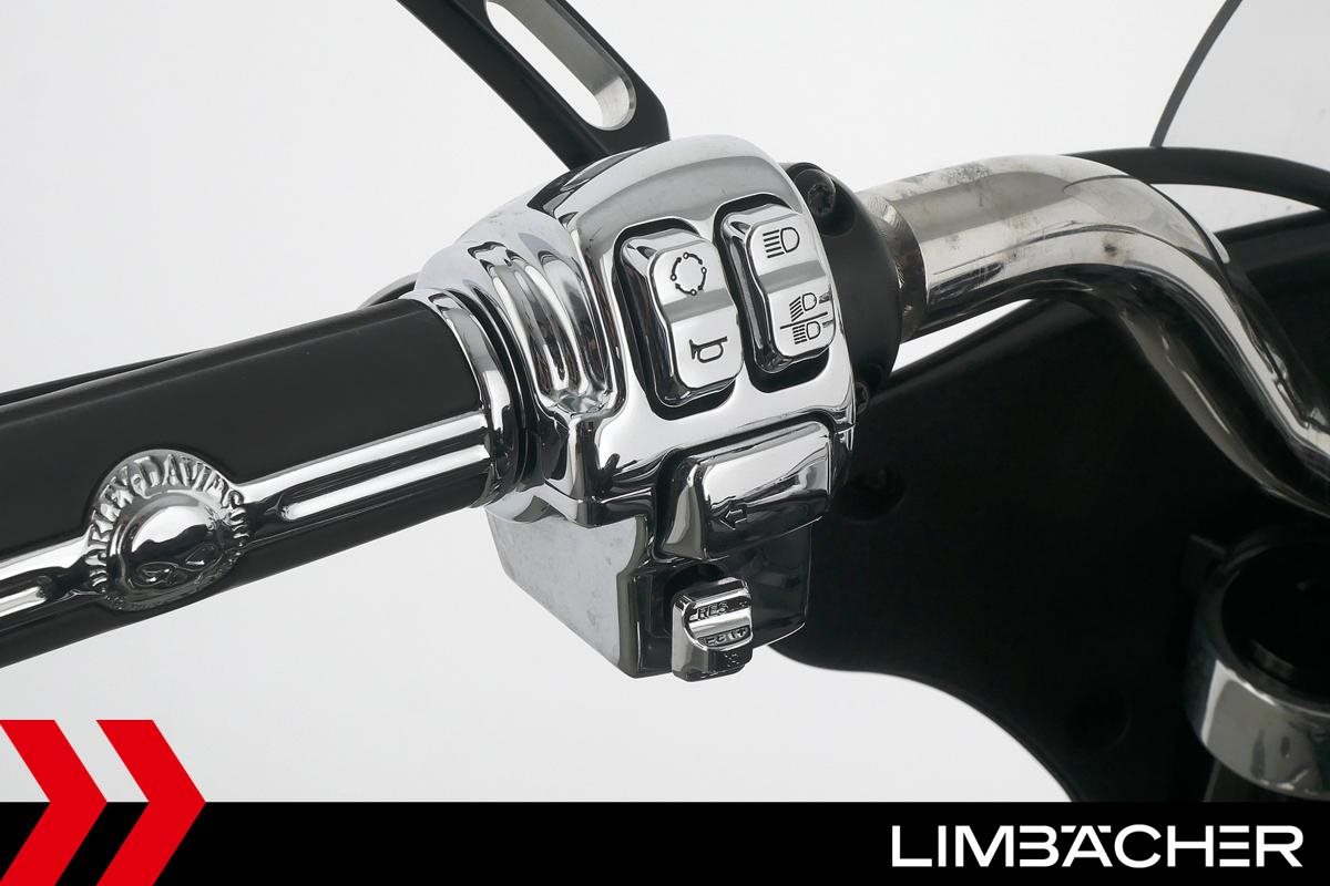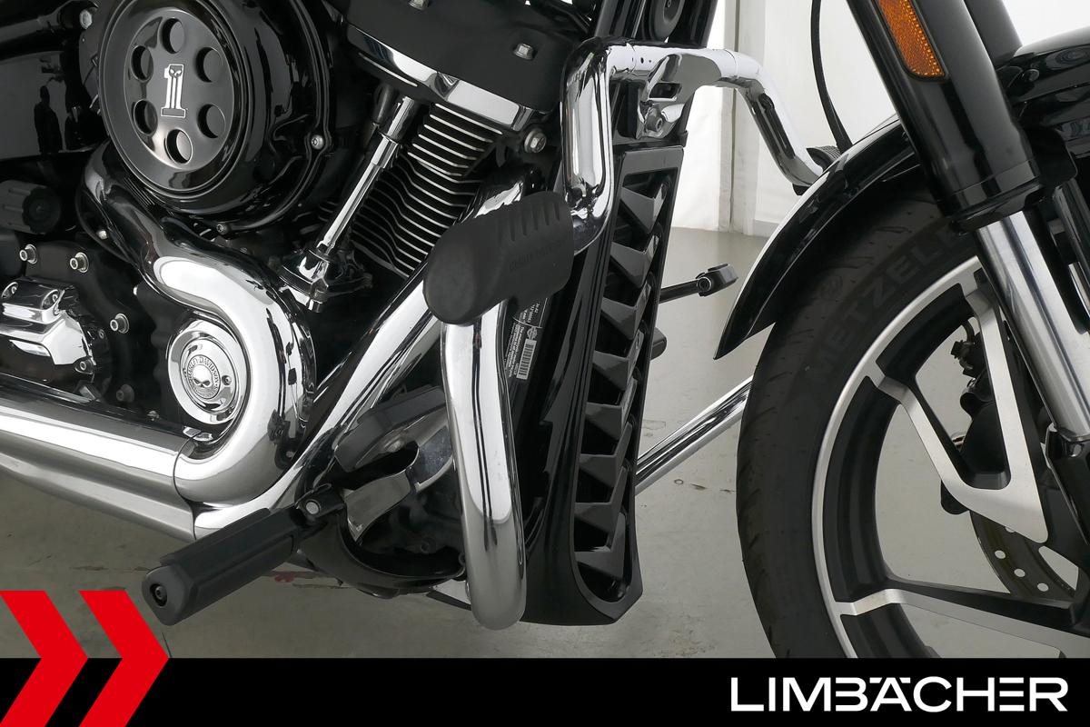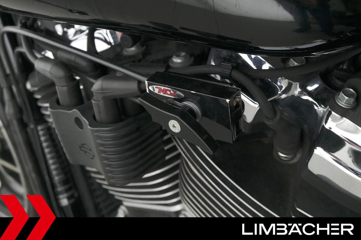 Eine scheckheftgepflegte Harley-Davidson Softail Sport Glide FLSB aus erster Hand in Topzustand u.a. mit MCJ-Klappenauspuff manuell sowie Komfort-Sitzbank.