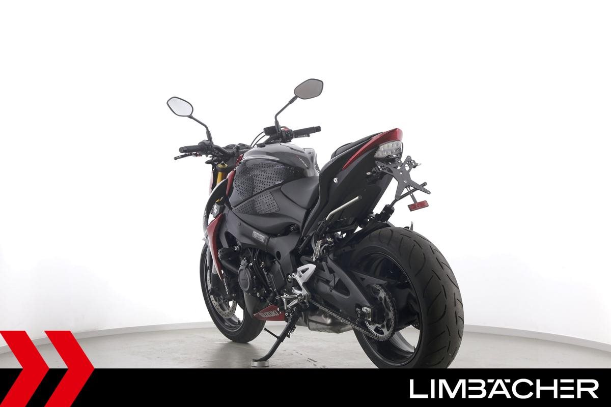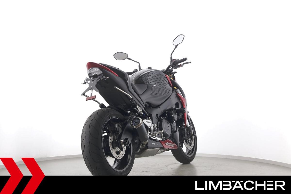 Eine scheckheftgepflegte Suzuki GSX-S 1000 aus zweiter Hand in sehr gepflegtem Zustand u.a. mit BOS-Endschalldämpfer und kurzem Kennzeichenhalter.