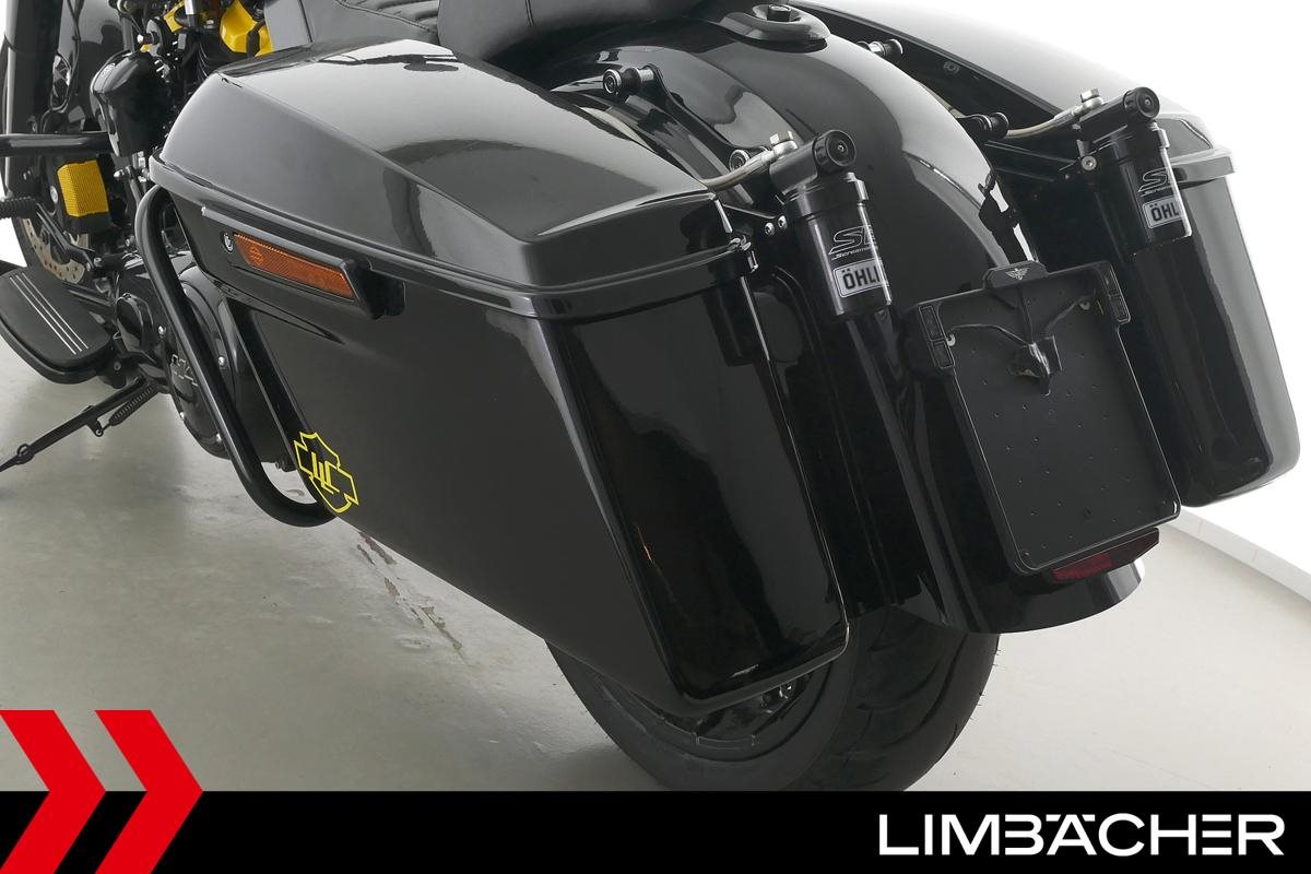 Eine scheckheftgepflegte Harley-Davidson Road King Special FLHRXS aus zweiter Hand in Topzustand u.a. mit KessTech-Klappenauspuff sowie Öhlins Federbeinen.