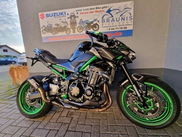 Z 900Das Nacket Bike schlecht hin Aus erster Hand, top gepflegt und mit allen wichtigen Zubehör Teilen.Heckumbau mit LED BlinkernLenkerenden SpiegelMotor SchutzpadEinstellbare Hebel und Leverguard in FahrzeugfarbeHöckerabdeckungAuspuff AluhalterSturzpads an beiden AchsenHeberaufnahme für HeckständerDer SC Projekt ist nicht mehr verbaut, kann aber günstig erworben werden. Gerne Finanzieren wir auch ihren Traum von einem Neuen Fahrzeug. Die brandneue Z900 evolutioniert die Sugomi-Philisophie. Mit ihrem markanten, aggressiven Sugomi-Design, ihrer erstklassigen Ausstattung und der geballten Power des 948-cm-Motors setzt die Z900 ein Statement auf jeder Straße. Voll-ausgestattetes Supernaked-Bike Neben dem aufregenden Motor und dem wendigen Fahrverhalten der Z900 sorgen komfortable Ausstattungsmerkmale wie das große Display mit gut ablesbaren Informationen, die Sprachsteuerung und die elektronische Cruise Control für noch mehr Fahrspaß im Alltag. Das erweiterte elektronische Fahrassistenzpaket umfasst zudem Kawasakis neuesten Dual-KQS (Kawasaki-Quick-Shifter für Hoch- und Hinunterschalten). Wir sind Vertragspartner folgender Marken im Raum Weilburg-Limburg Zweirad: Suzuki, Kawasaki, Royal Enfield, Peugeot, Malaguti, KSR Vierrad: CF MotoBesuchen Sie uns in Weilburg, Friedenbachstrasse 10 Wir bieten: - Meisterwerkstatt und Geschultes Personal- 24/48 Stunden E-Teile Service- Mobilitätsservice- Hol und Bring-Service- Mietstation- Bekleidung und Zubehör- Ständig eine große Anzahl an gepflegten und preiswerten Fahrzeugen- Finanzierung mit und ohne Anzahlung bei flexiblen Laufzeiten- Inzahlungnahme und Ankauf von gepflegten Fahrzeugen- Bundesweiter Zulassungsservice und LieferungMelden sie sich gerne unter Email: weilburg (ed) braunis-bike-shop.de oder telefonisch unter 06471-7888.Unser Team freut sich auf Ihren Besuch und berät Sie gerne. Unsere Öffnungszeiten: Montags GeschlossenDienstag-Freitag: 10.00 Uhr - 12.00 Uhr und 13.00 Uhr - 18.00 UhrSamstag von 9.00 Uhr - 13.00 Uhr Gerne liefern wir unsere Fahrzeuge auch innerhalb Deutschlands ,gegen einen entsprechenden Aufpreis von 199.-€.Irrtum, Änderungen und Zwischenverkauf vorbehalten. Es gelten unsere AGB.