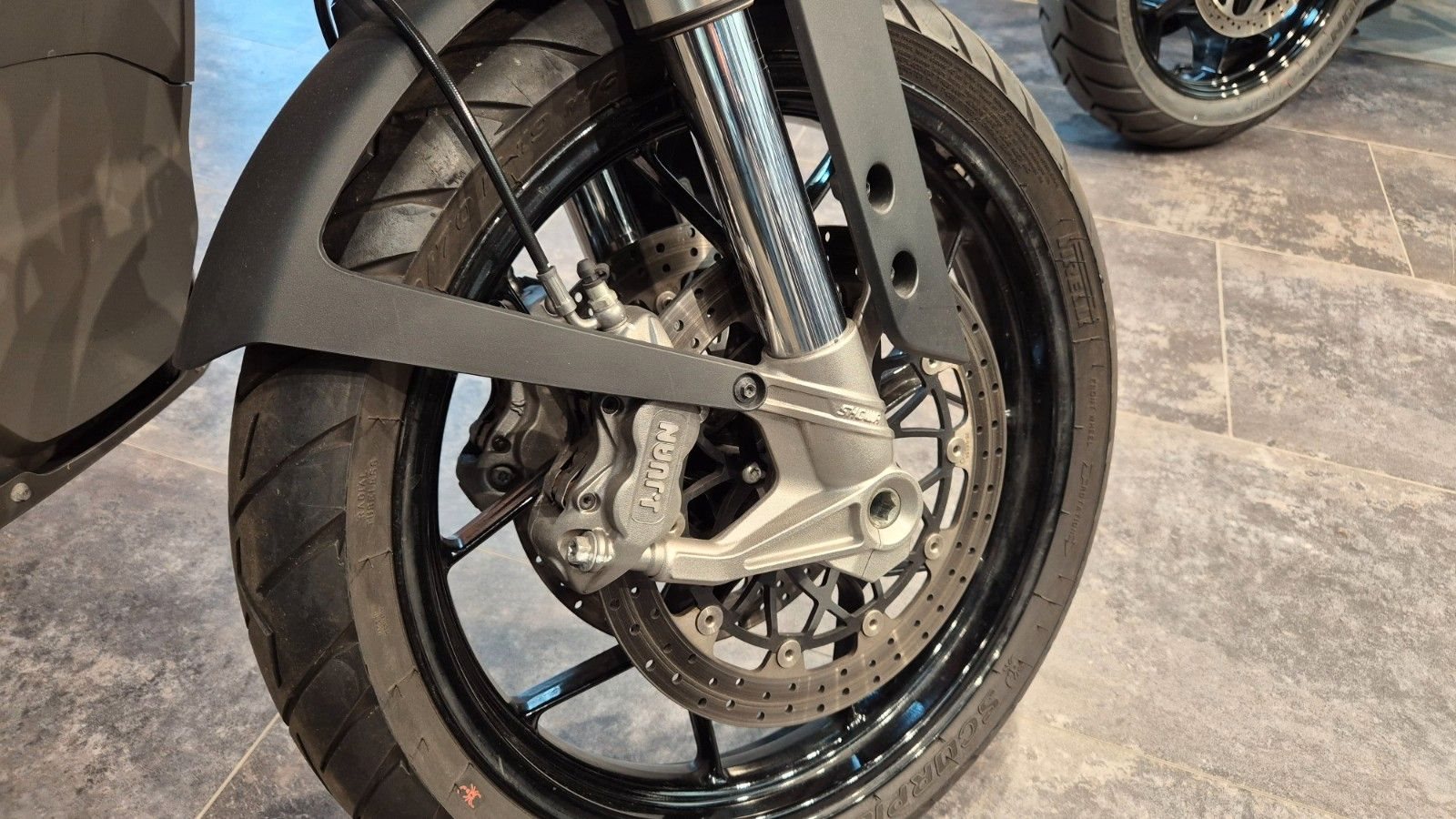 - Showa Upside-down-Gabel 43 mm und Stoßdämpfer, voll einstellbar