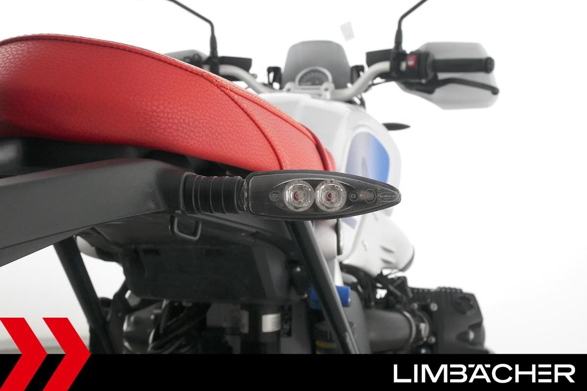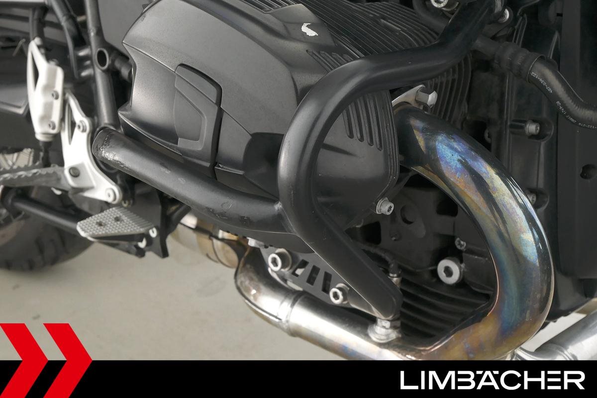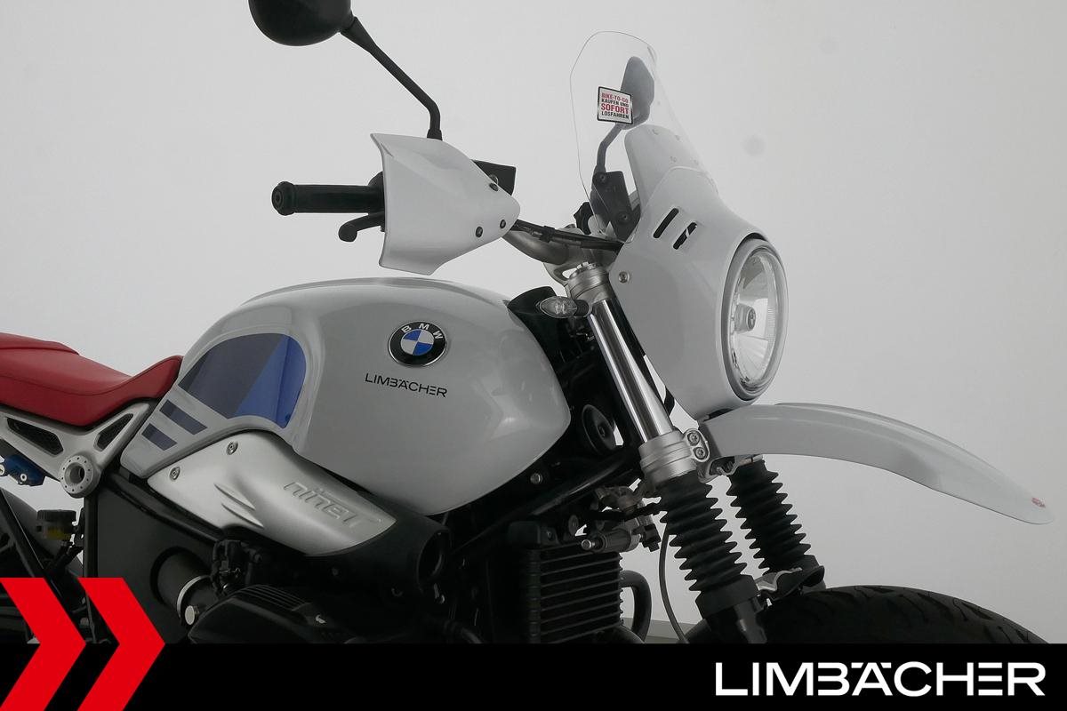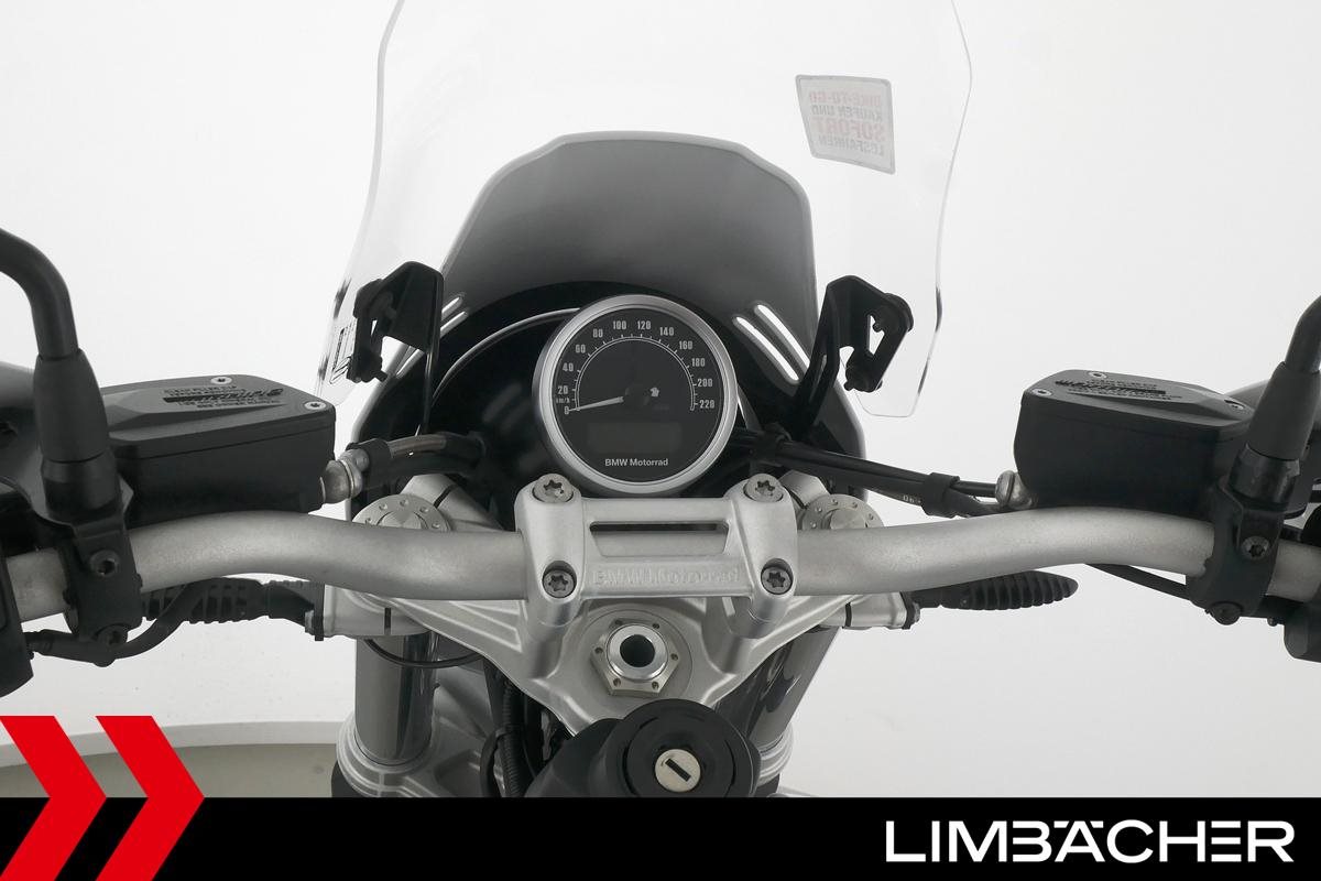 Eine scheckheftgepflegte BMW R nineT in gepflegtem Zustand u.a. mit Sturzbügeln und Scheibe.