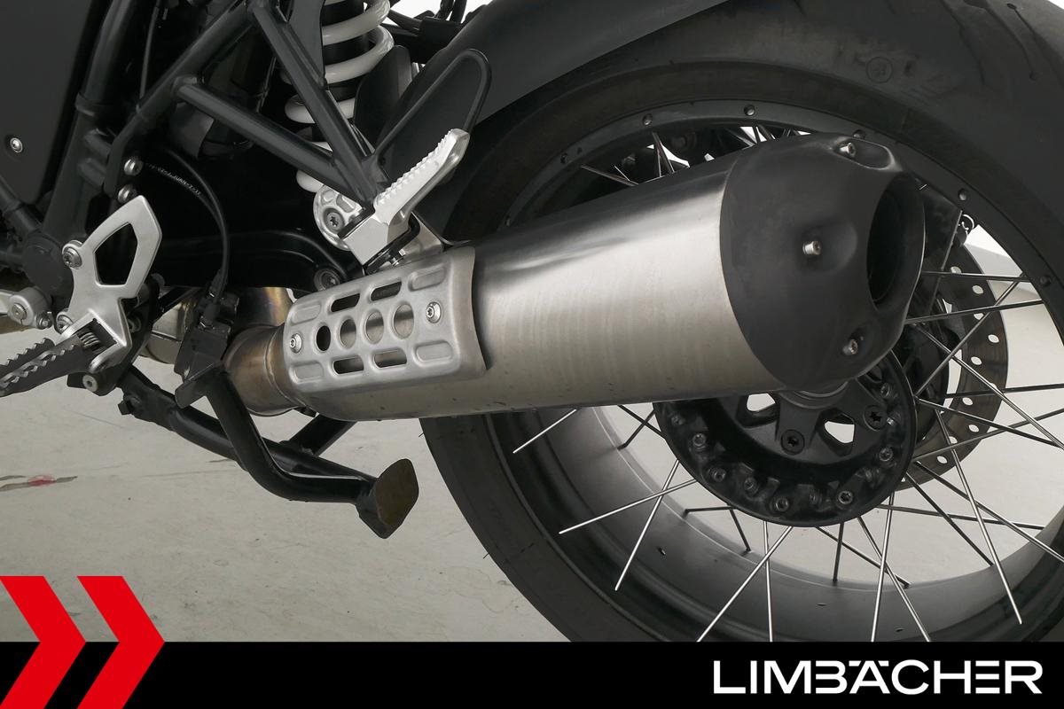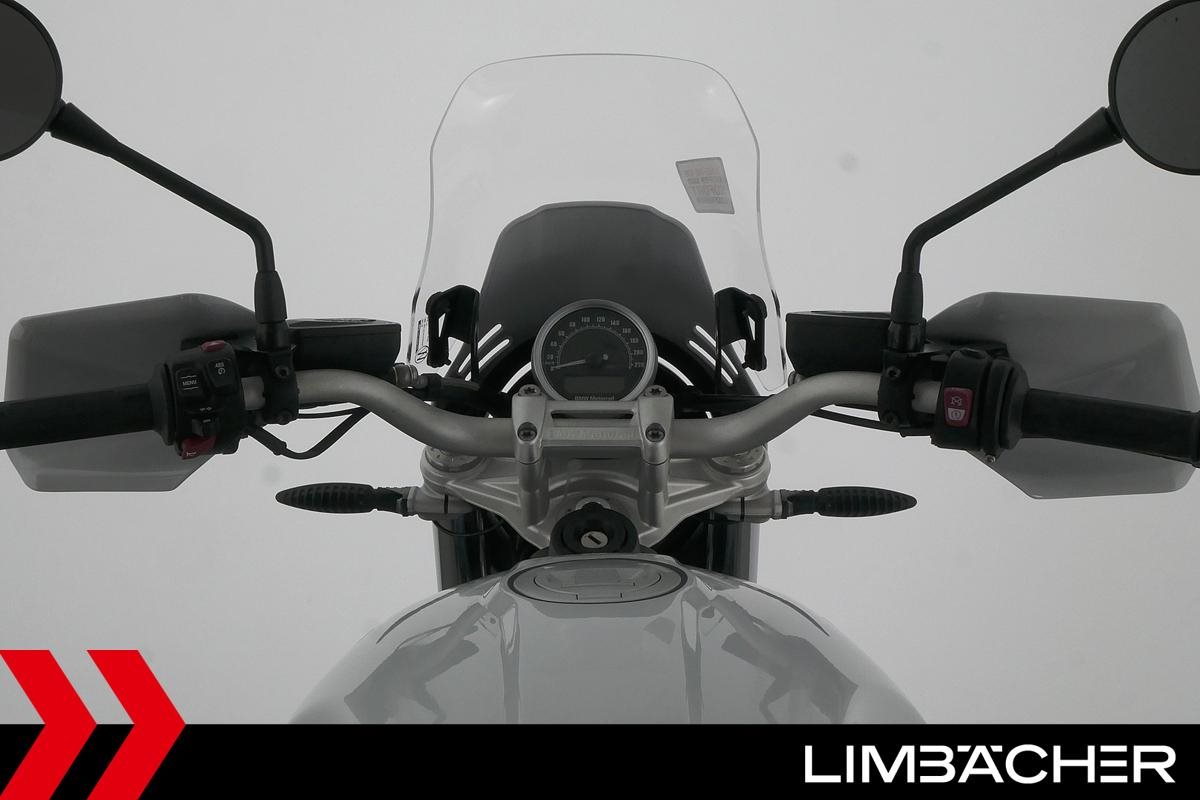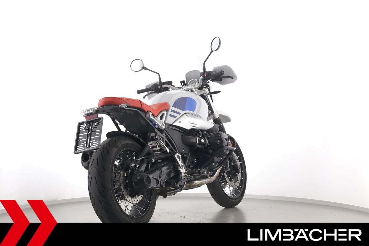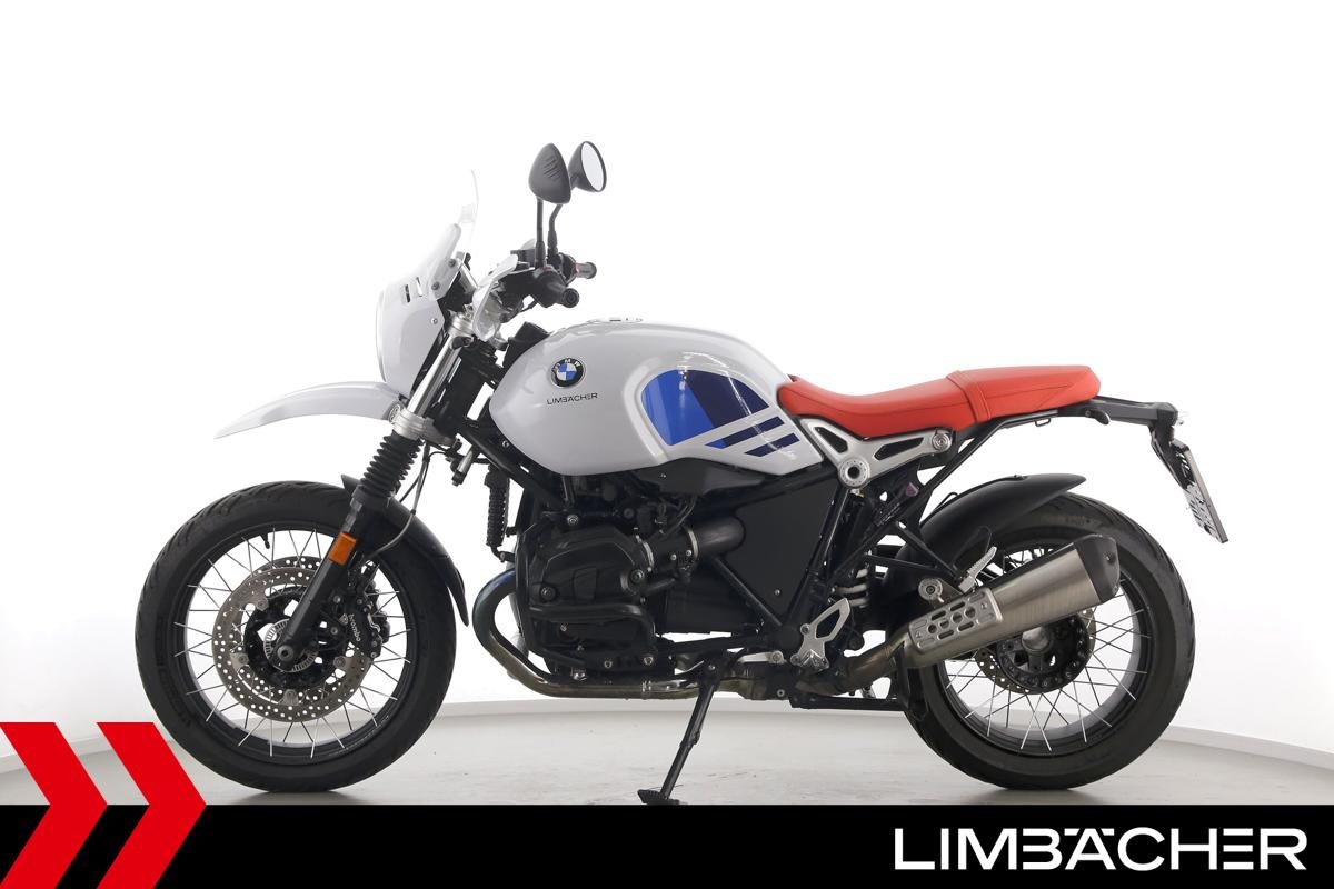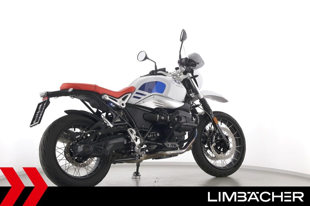 Eine scheckheftgepflegte BMW R nineT in gepflegtem Zustand u.a. mit Sturzbügeln und Scheibe.