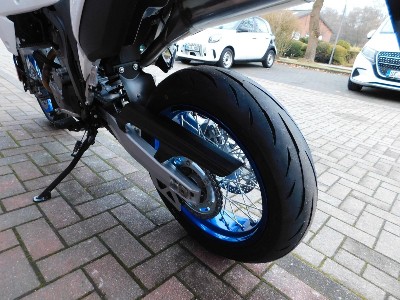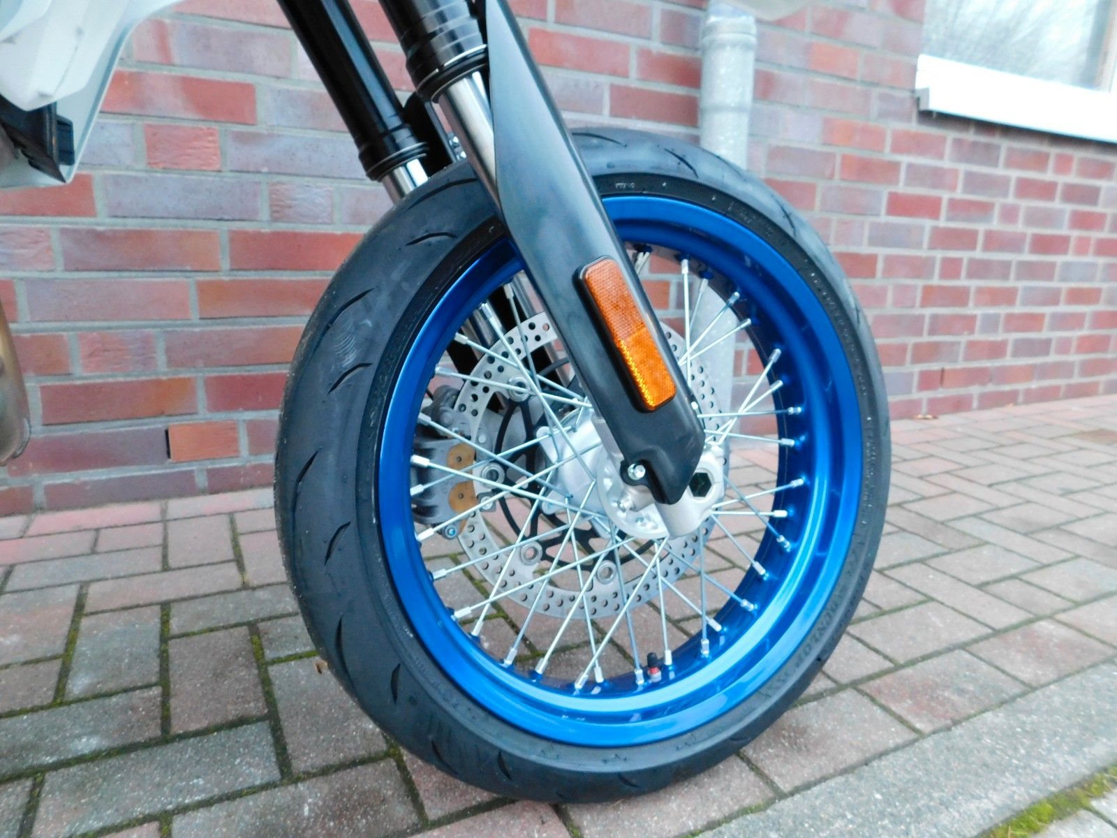 17-Zoll-Räder vorne und hinten, eine ausgeklügelte Fahrwerksgeometrie mit der idealen Balance aus Präzision und Agilität und dazu noch hochwertige Federelemente von KYB: Das ist das perfekte Rezept für ein easy Handling, wie du es von einer Supermoto erwartest.