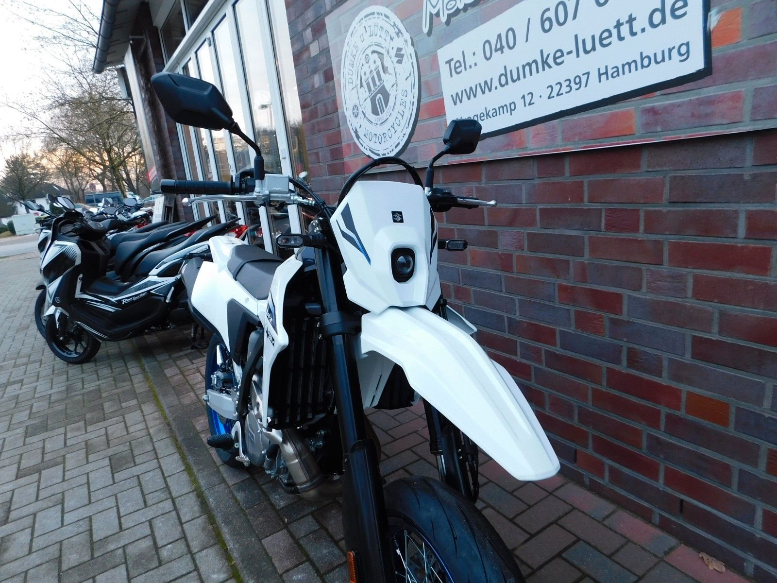 Moin! Wir sind Dumke u. Lütt, Euer offizieller Hamburger Vertragshändler für Suzuki & Yamaha. Seit über 45 Jahren (seit 1976) sind wir auf den Straßen Hamburgs zu Hause. Wir teilen gerne unsere Lebensfreude und Begeisterung für Motorräder und Roller mit Euch. Daher laden wir Euch in unsere rund 1.000m große Welt bei uns in Hamburg (Duvenstedt) ein. Von Montag bis Samstag stehen Euch unsere Türen offen. Mehr über uns und die Community findet Ihr unter www.dumke-luett.de. Ihr wollt mit uns schnacken? Dann ruft an unter 040/607697-0 oder schreibt eine E-mail an info@dumke-luett.de