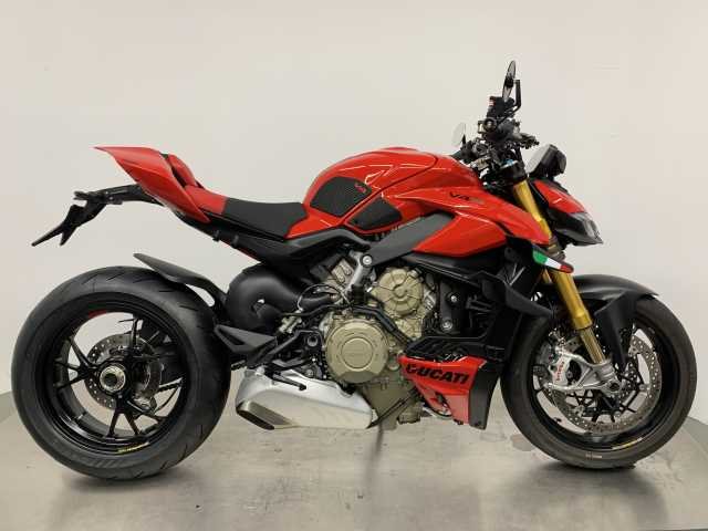 Sehr schöne Streetfighter V4 S aus 2023. Die Ducati ist unter anderem mit Lenkerendenspiegeln, einem schöneren Kennzeichenhalter und einem Rizoma-Tankdeckel ausgerüstet. Die Verschleißteile befinden sich in gutem Zustand. Das Fahrzeug erhält vor Übergabe an den Käufer noch die Hauptuntersuchung. Der letzte Service wurde im Mai 2025 bei 4.648 km durchgeführt.