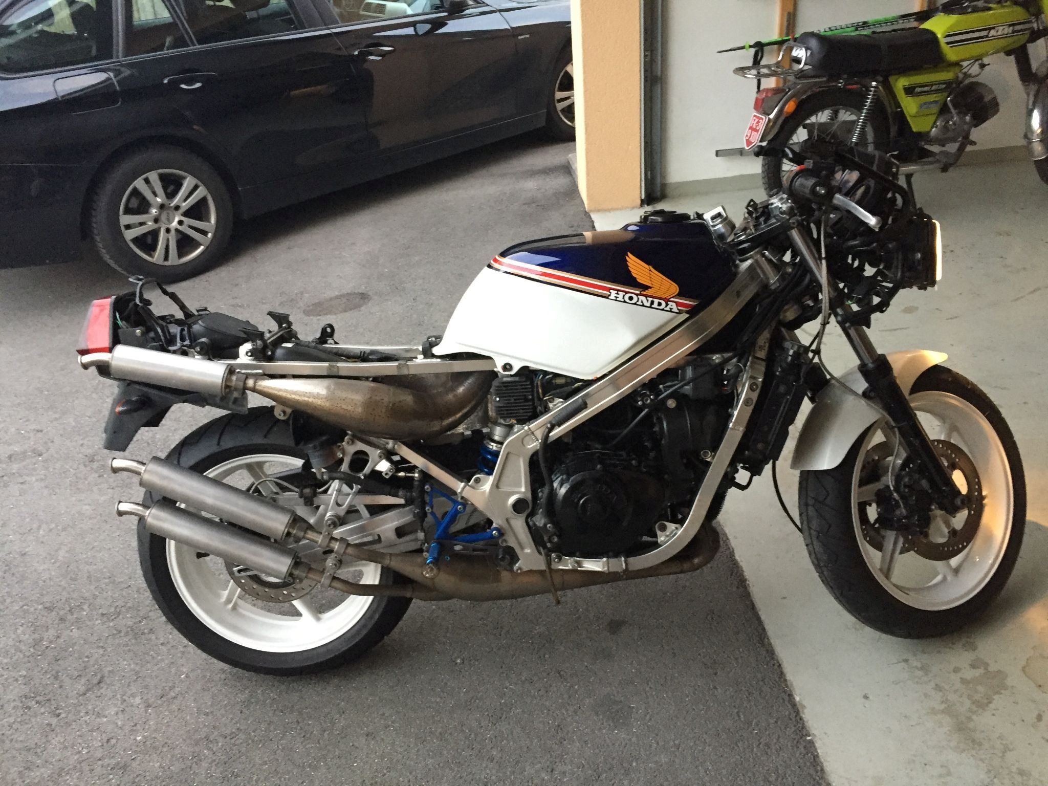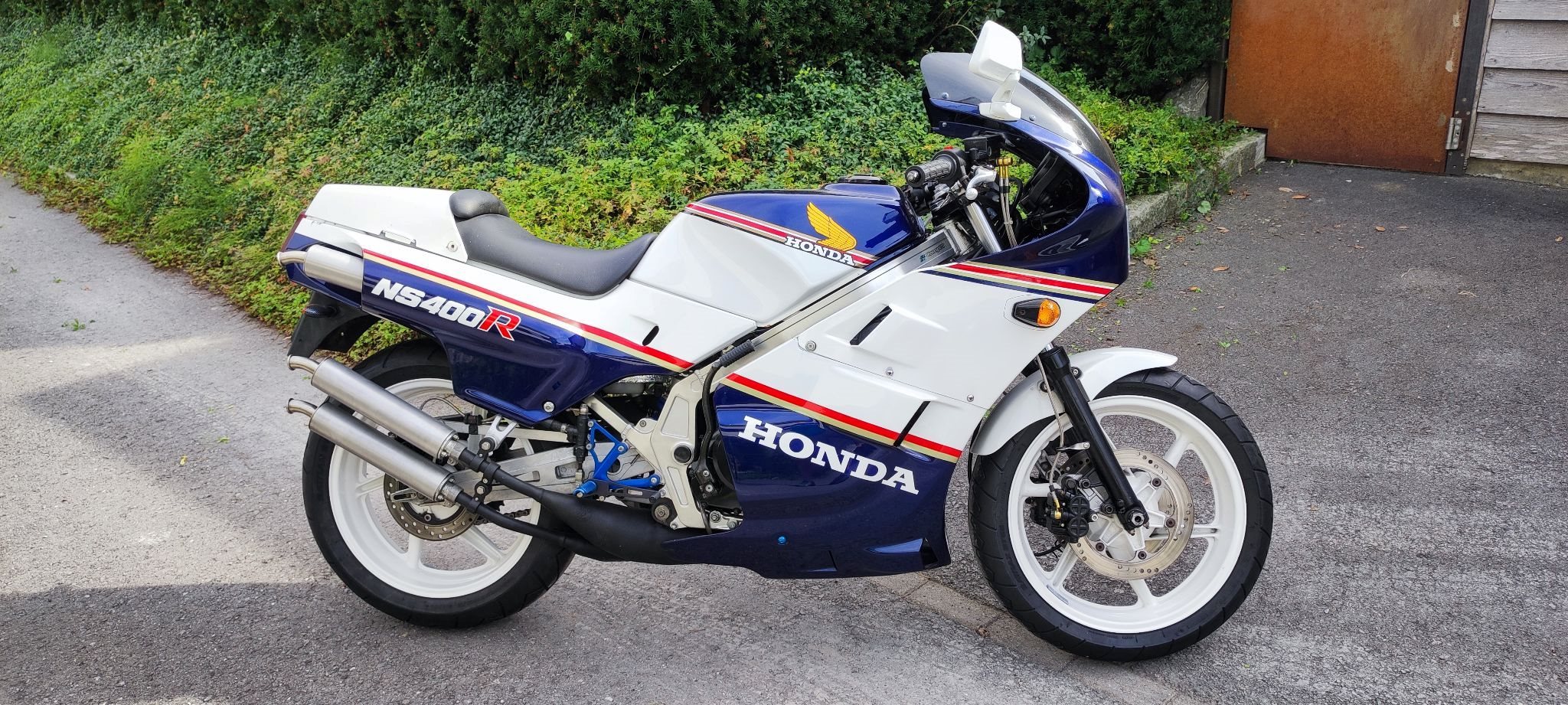 Verkaufe Honda NS400R Baujahr 1986. 21640 KM Laufleistung. Deutsche Papiere, war bis 2019 angemeldet. Befindet sich seit 2020 in meinem Besitz, allerdings nie angemeldet. Lediglich auf Privatstraße ein paarmal auf und ab gefahren. Alle Änderungen im Brief eingetragen. Technisches Gutachten vom TÜV Nord aus dem Jahre 2010 vorhanden, damals bei 20847 KM. Motorrad wurde 2022 nach 3 Jahren Standzeit wieder in Betrieb genommen (Bremsen, Vergaser, Luftfilter, Öle, Kerzen in Stand gesetzt), von korrekter Funktion gibt es ein Video. Seither allerdings wieder stillgelegt. Jolly Moto Auspuffanlage, Umbau auf Honda CBR 600 Felgen von Firma Daum, Stahlflex Bremsleitungen vorne wie hinten. Fahrwerk vorne und hinten Firma Wilbers. Fussrastenanlage Firma Daum. Das Motorrad ist dem Alter entsprechend in gutem Zustand, an der Verkleidung sind kleinere Gebrauchsspuren. Der Motor wurde vor dem Gutachten 2010 komplett revidiert, ist auch im Gutachten vermerkt. Fahrzeug kann besichtigt werden. Ich verkaufe wegen Hobbyaufgabe - Schrauben an alten Zweitaktlegenden.