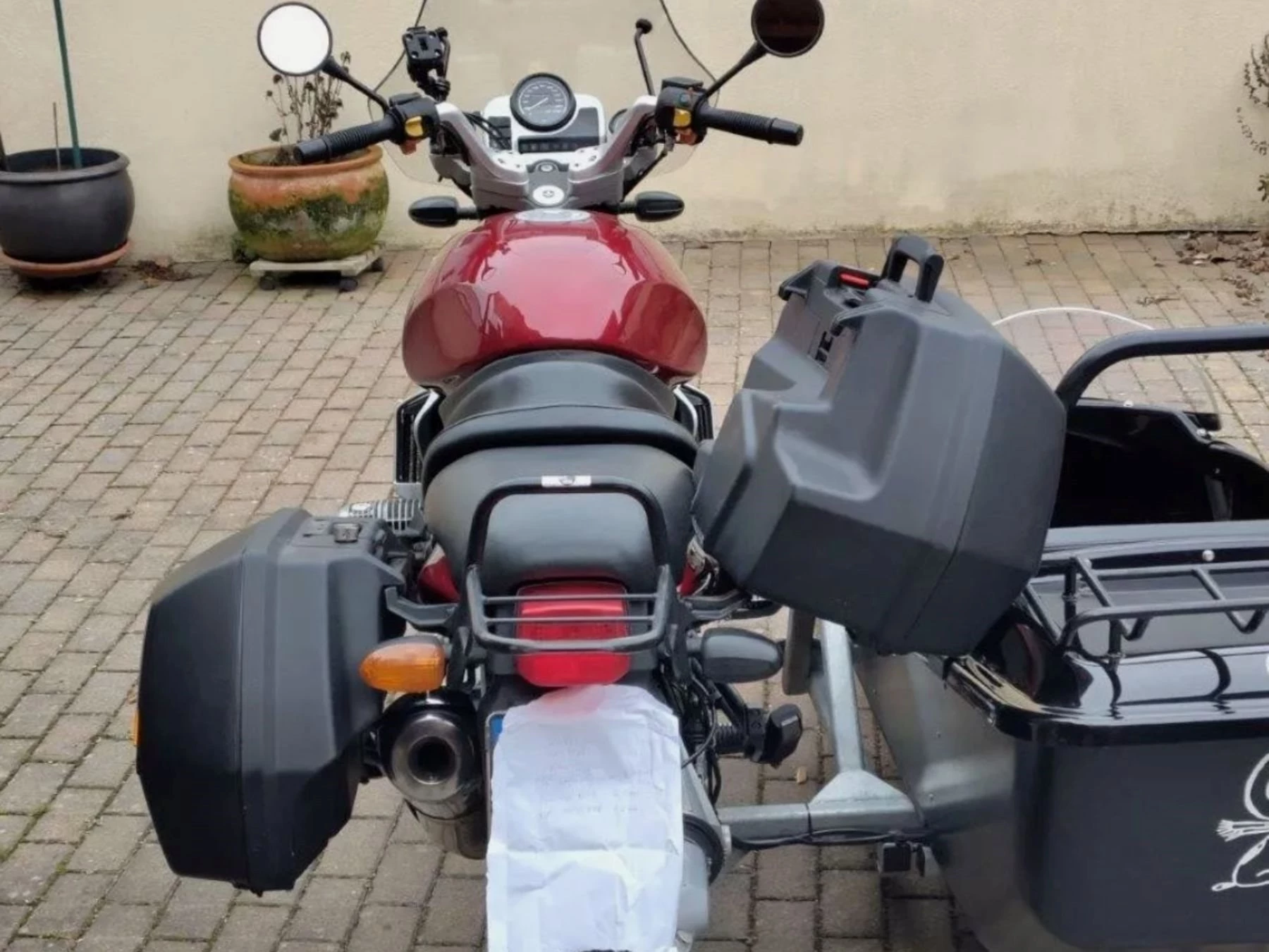Verkaufe unser BMW-Gespann Nähe Frankfurt. HU, EZ 1995, technisch und optisch in Ordnung, Beiwagen Trip Teq-Heeler, mit Einstiegsklappe von Joy TEC, Lenkererhöhung, Nachlaufverkürzung, Gepäckträger (Motorrad und Beiwagen), 2 BMW Seitenkoffer (es passt nur der linke Koffer, rechts kein Platz), Räder und Reifen: vorne Motorradreifen 130/70 -17, Lasertec. Hinten 155 R 15 PKW Reifen mit 5 mm Profil. Seitenwagen 155/70 R13 PKW Reifen. Vor etwa 1 Jahr bei Ulli Jacken gespanntechnisch überholt. 2 Vorbesitzer, Motorrad ist