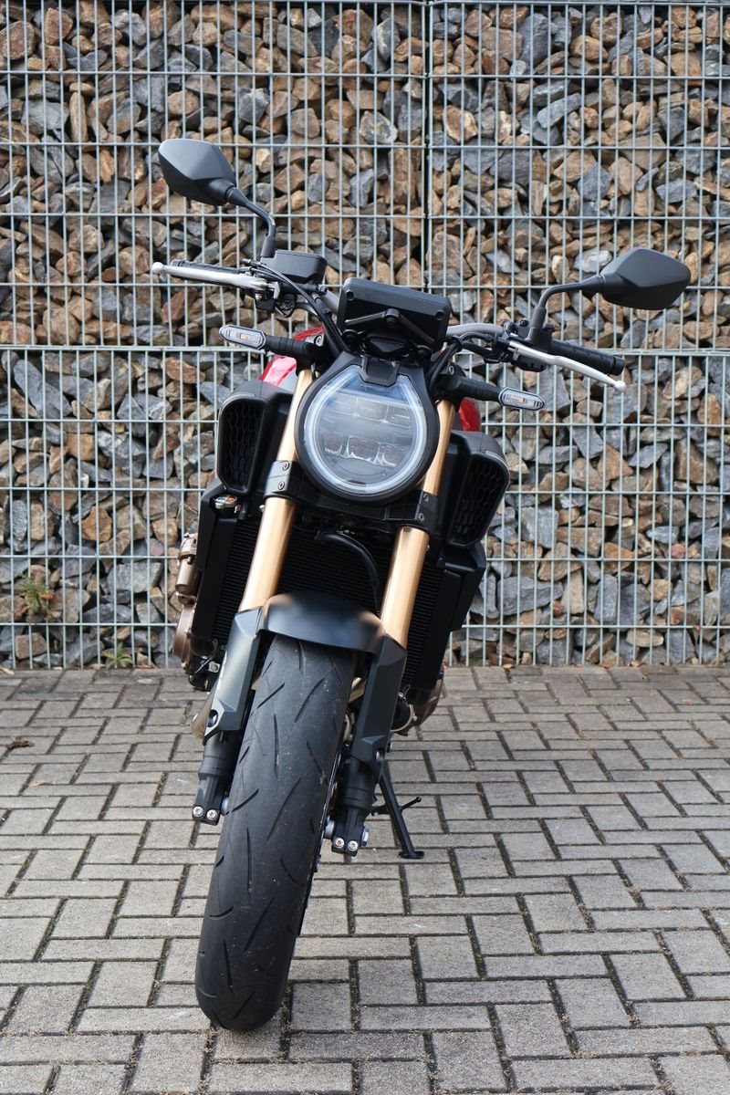 Du hast es in der Hand. Der DOHC-Vierzylinder-Reihenmotor leistet in der Spitze 70 kW (95,2 PS) - der rote Bereich beginnt bei 12.000 U/min - und bietet ein Drehmoment von 63 Nm. Honda Händler können das Bike für alle mit A2-Führerschein auf 35 kW drosseln und die Drosselung entfernen, sobald ein A-Führerschein vorgelegt werden kann. Da Leistung Kontrolle braucht, verhindert die Anti-Hopping-Kupplung das Blockieren des Hinterrads bei starkem Bremsen und Herunterschalten. Das Notbremssignal (ESS) wird bei Vollbremsungen aktiviert und sorgt so für bessere Sichtbarkeit auf der Straße.
