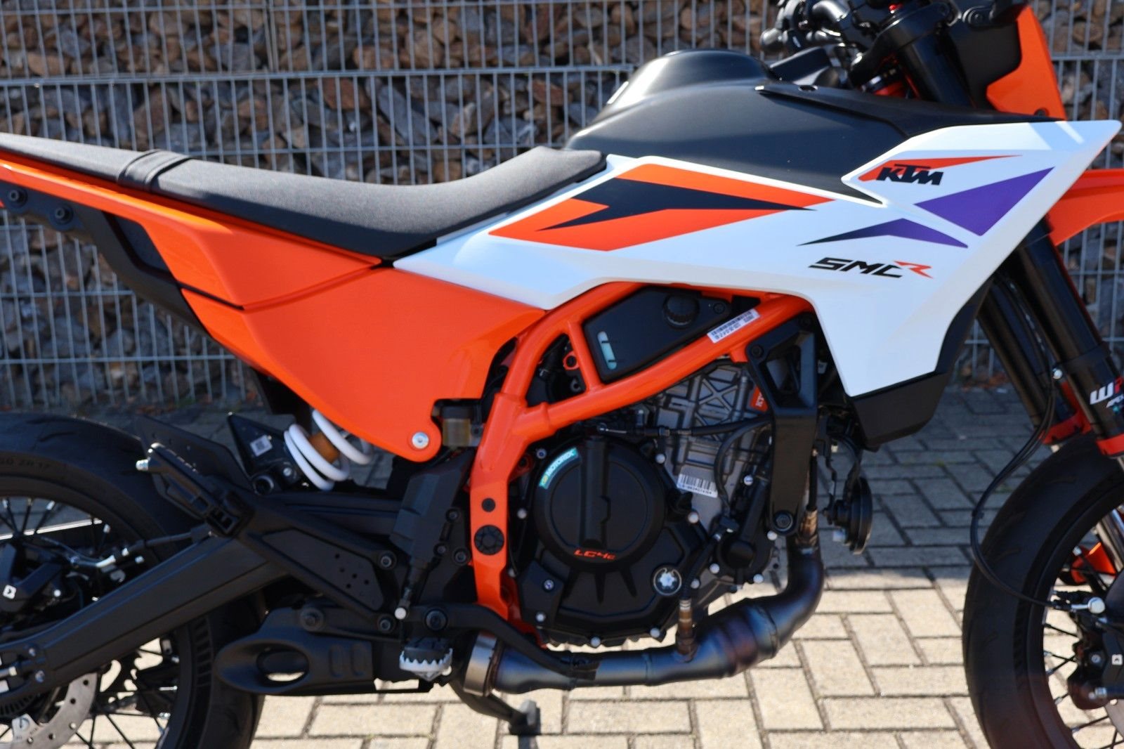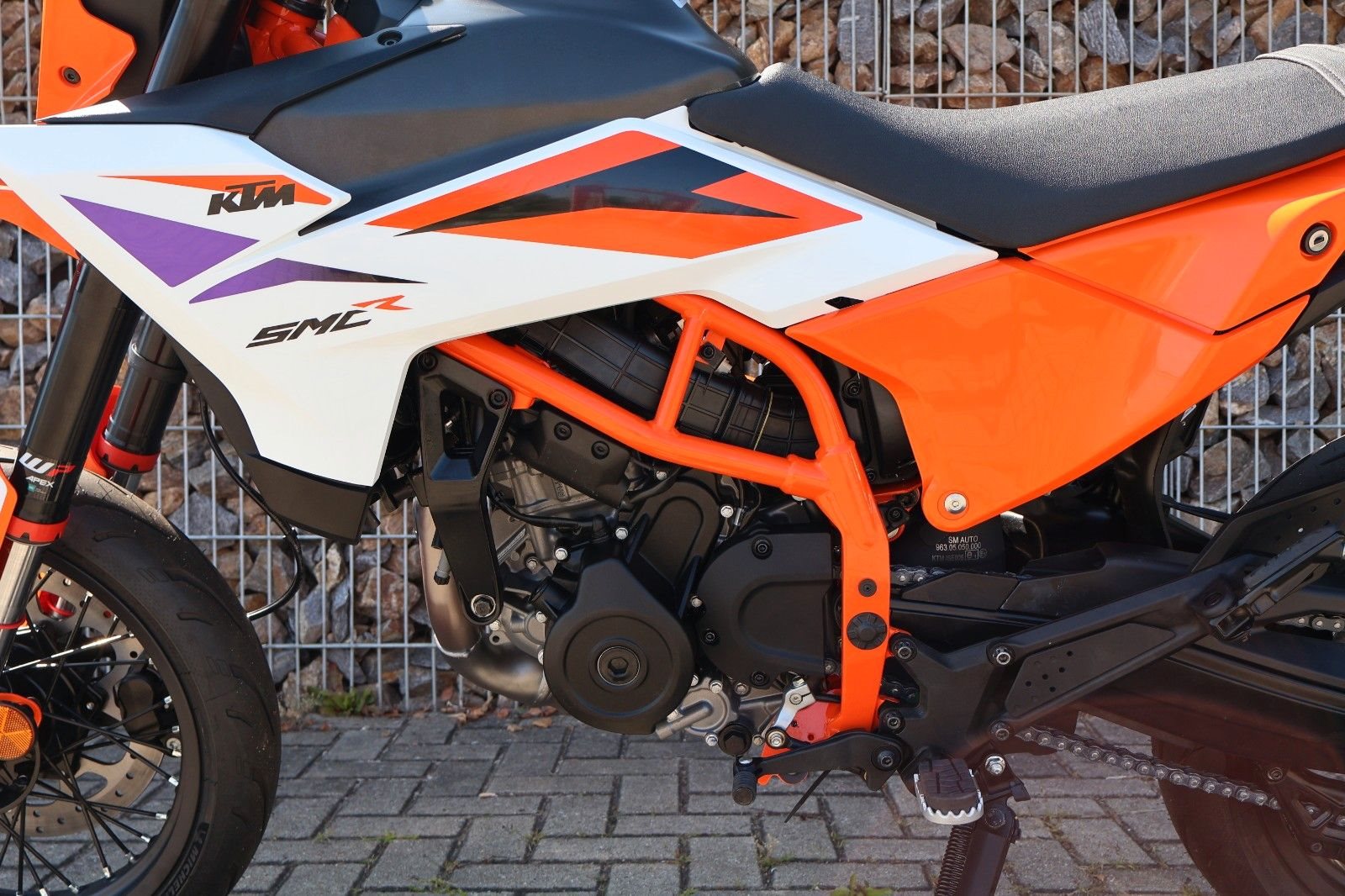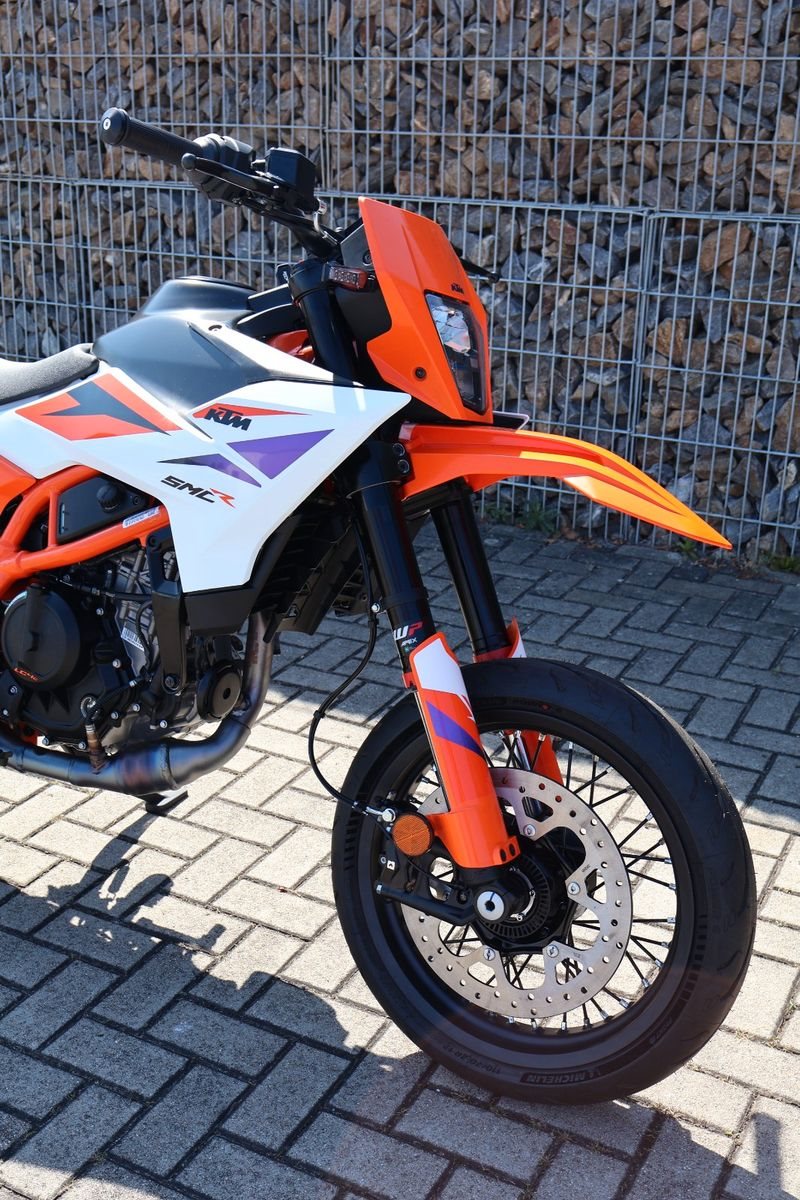 Die KTM 390 SMC R reiht sich in die KTM SuperMotard-Familie der Mittelklasse ein und verspricht grenzenlosen Fahrspaß für alle. Genau wie die KTM 690 SMC R, bietet auch die KTM 390 SMC R mit Leichtigkeit überragende Leistung auf der Straße und auf unbefestigten Strecken.