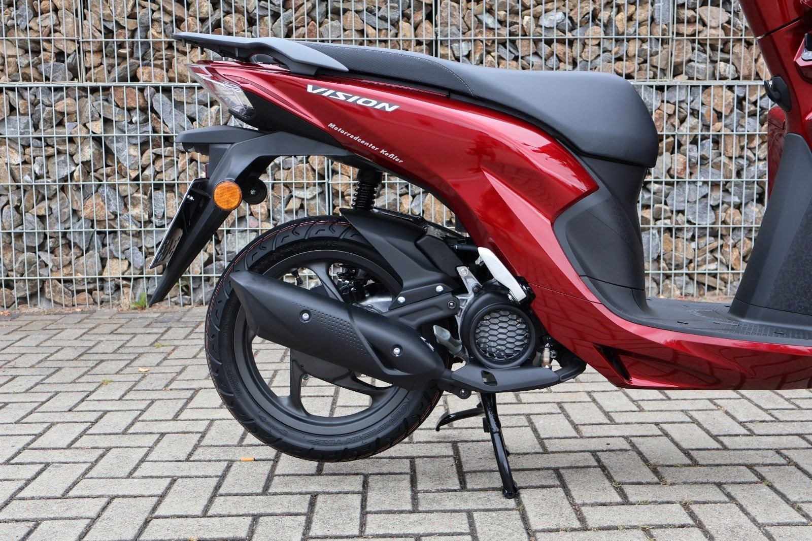Wenn du schnell von einem Stadtteil zum anderen kommen musst, ist dieser stylische und erschwingliche Roller wie für dich gemacht. Hier ist er geradezu souverän. Du sitzt entspannt und komfortabel auf dem Roller und hast die Umgebung perfekt im Blick. Praktisch ist der flache Boden. Der Vision 110 ist sparsamer im Verbrauch und kommt mit zahlreichen Premium-Merkmalen für herausragenden Fahrkomfort. Der Vision 110 steht zwar für einen unkomplizierten, einfachen Transport, aber er ist so viel mehr, wenn es um seine Allround-Leistung geht.