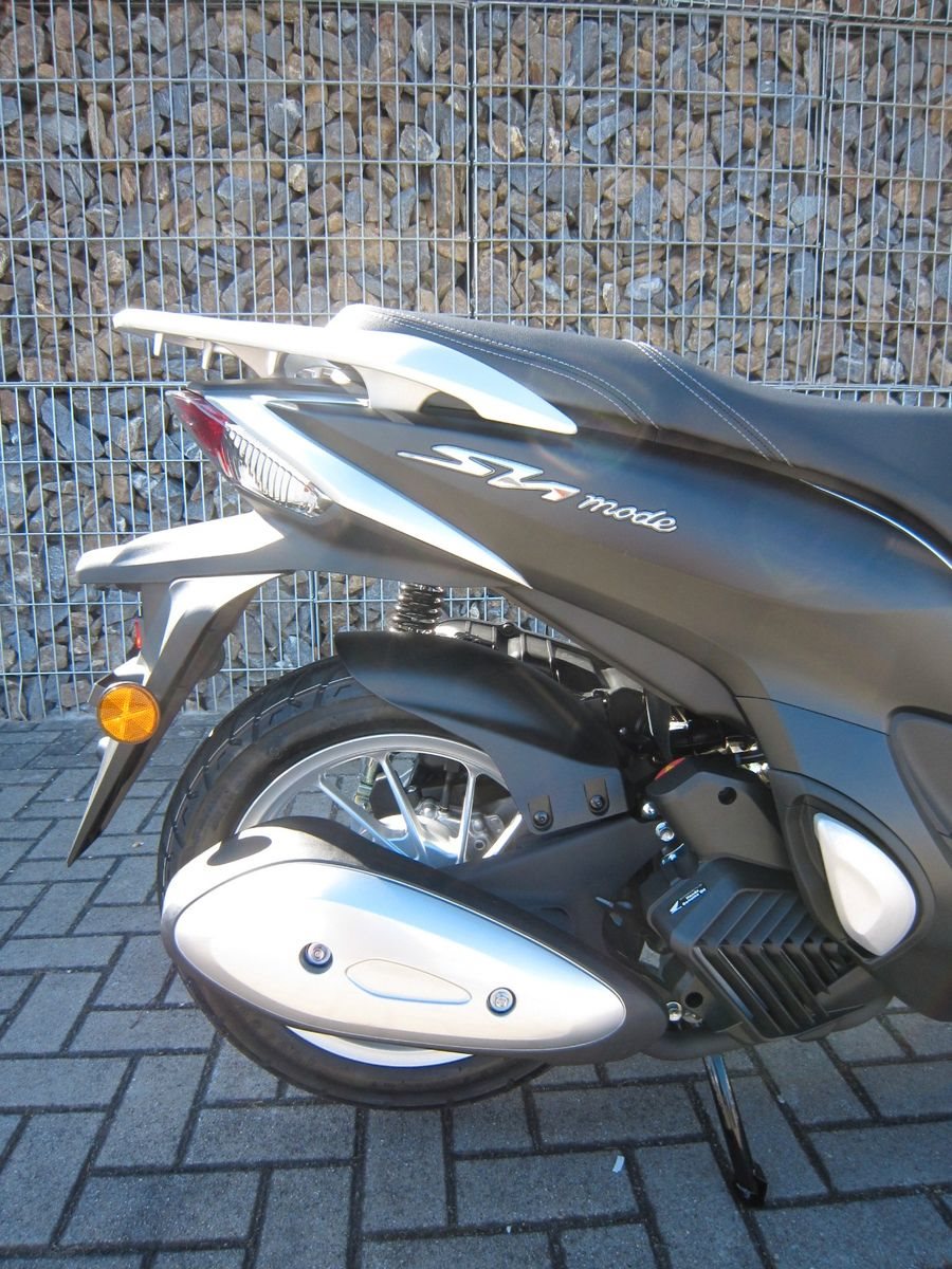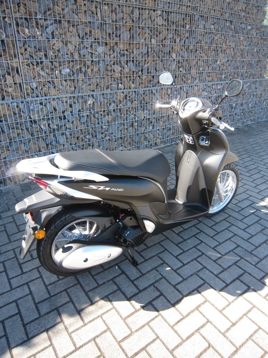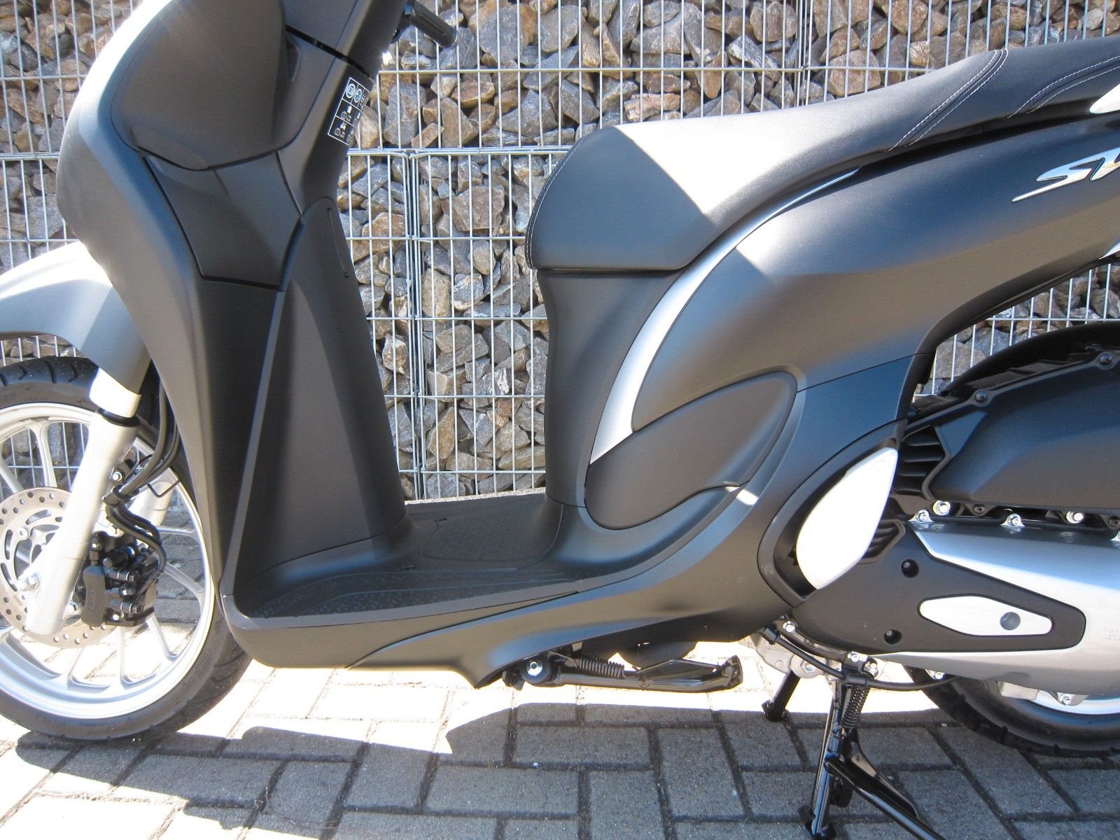 Die markanten Linien des SH Mode 125 machen Eindruck. Doch als Mitglied unserer SH-Familie zeichnet sich der Roller nicht nur durch elegantes Design, sondern auch durch ein hohes Maß an praktischer Funktionalität aus. Der große, flache Boden sorgt für mehr Beinfreiheit. Unter dem Sitz ist Platz für einen Integralhelm und im praktischen, in die Verkleidung integrierten Handschuhfach mit USB-Buchse (Typ C) lässt sich während der Fahrt ein Smartphone aufladen. Das perfekt abgestimmte Fahrwerk sorgt für ein sicheres einfaches Handling, die Räder aus Aluguss (16 Zoll vorn, 14 Zoll hinten) für eine angenehme Fahrt auf rauem Asphalt.
