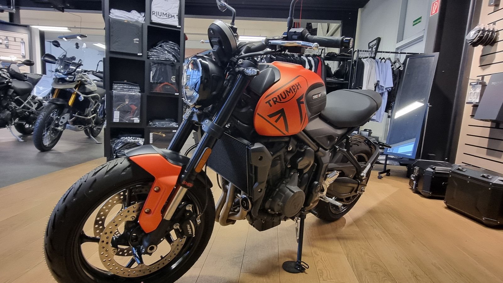 Zum Verkauf steht eine wunderschöne Triumph Trident 660 (Tageszulassung) in der Farbe Baja Orange.