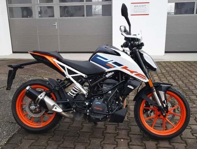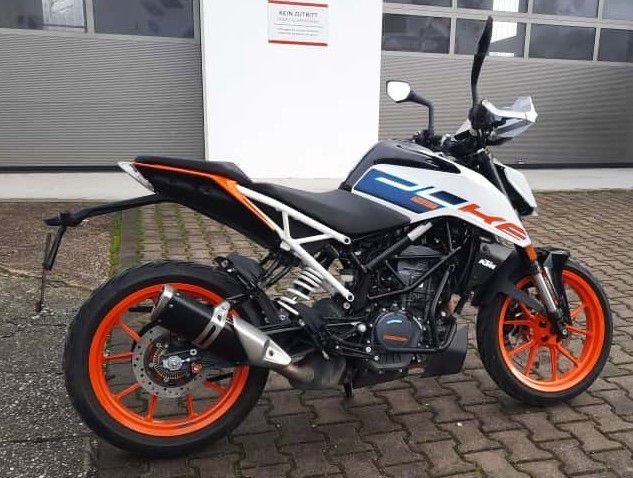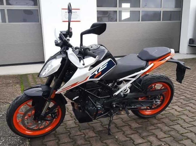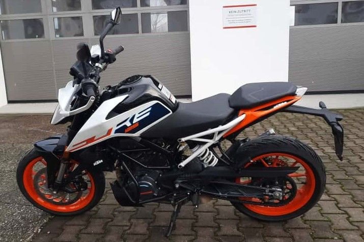 Zum Verkauf steht unsere KTM 125 Duke mit Erstzulassung im März 2023. Das ehemalige Fahrschulfahrzeug aus erster Hand ist unfallfrei und befindet sich den Kilometern entsprechend in einem gepflegten Zustand. Alle Services wurden beim KTM Vetragshändler durchgeführt, kürzlich wurde bei uns die große 15.000km Inspektion gemacht (Rechnung über ca. 460€ liegt bei). Auch alle Verschleißteile befinden sich in gutem Zustand. Die Duke ist aktuell um ca. 30mm tiefergelegt, kann auf Wunsch aber auch wieder auf die originale Sitzhöhe zurückgerüstet werden. Zu unseren Geschäftszeiten können Sie das Fahrzeug besichtigen und nach vorheriger Absprache auch Probefahren. Bei weiteren Fragen stehen wir gerne zur Verfügung.
