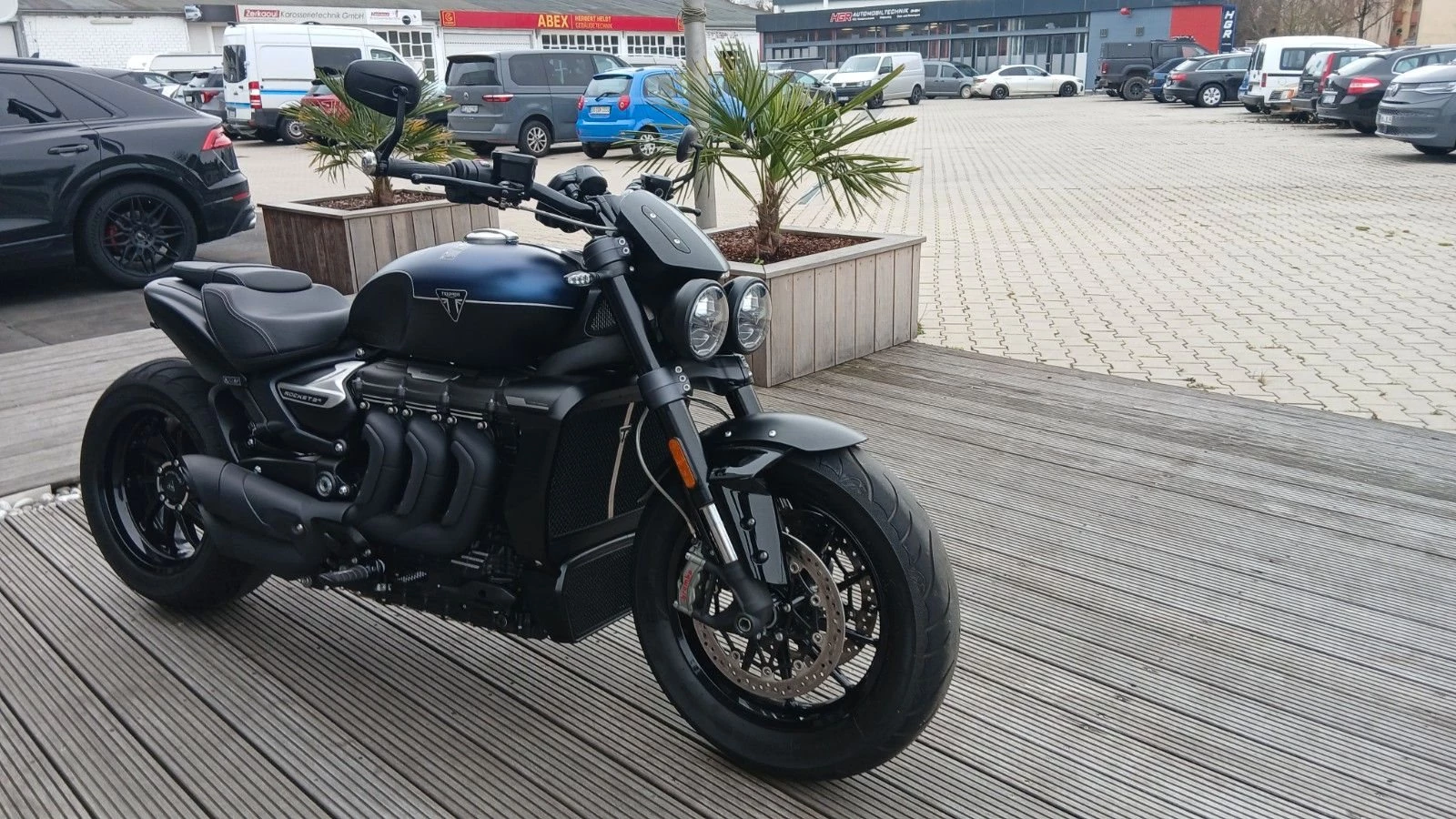 Auf ca. 1.500 qm Ausstellungsraum mit Fachwerkstatt bieten wir ihnen die komplette Modellpalette von Triumph und Honda Neufahrzeugen, sowie immer eine Auswahl an gebrauchten Fahrzeugen aller Marken. Desweiteren stellen wir einen Großteil des Original Triumph und Honda Bekleidungssortiment aus und bieten diverse Accessories für viele Modelle in der Ausstellung.