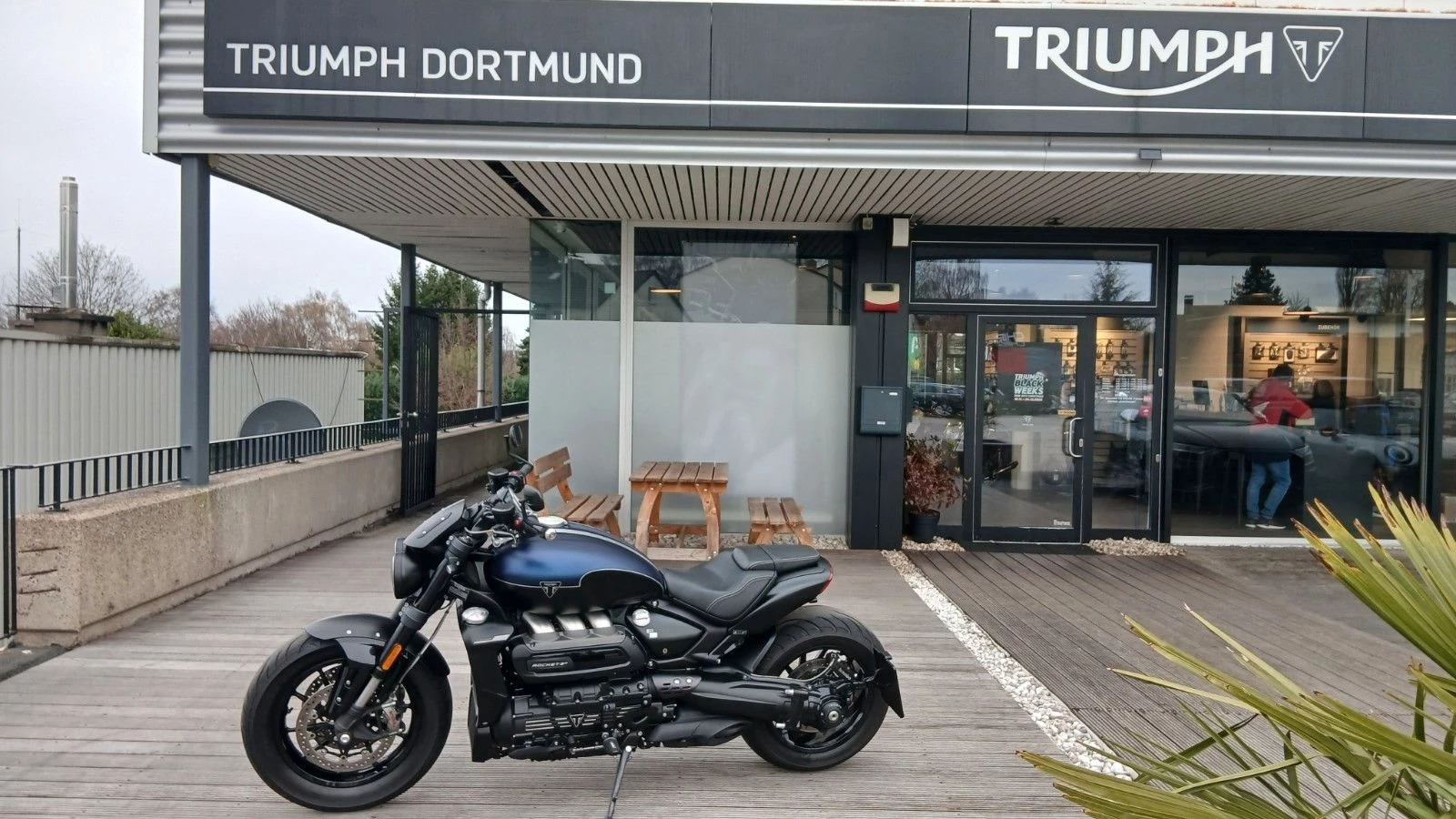 Auf ca. 1.500 qm Ausstellungsraum mit Fachwerkstatt bieten wir ihnen die komplette Modellpalette von Triumph und Honda Neufahrzeugen, sowie immer eine Auswahl an gebrauchten Fahrzeugen aller Marken. Desweiteren stellen wir einen Großteil des Original Triumph und Honda Bekleidungssortiment aus und bieten diverse Accessories für viele Modelle in der Ausstellung.
