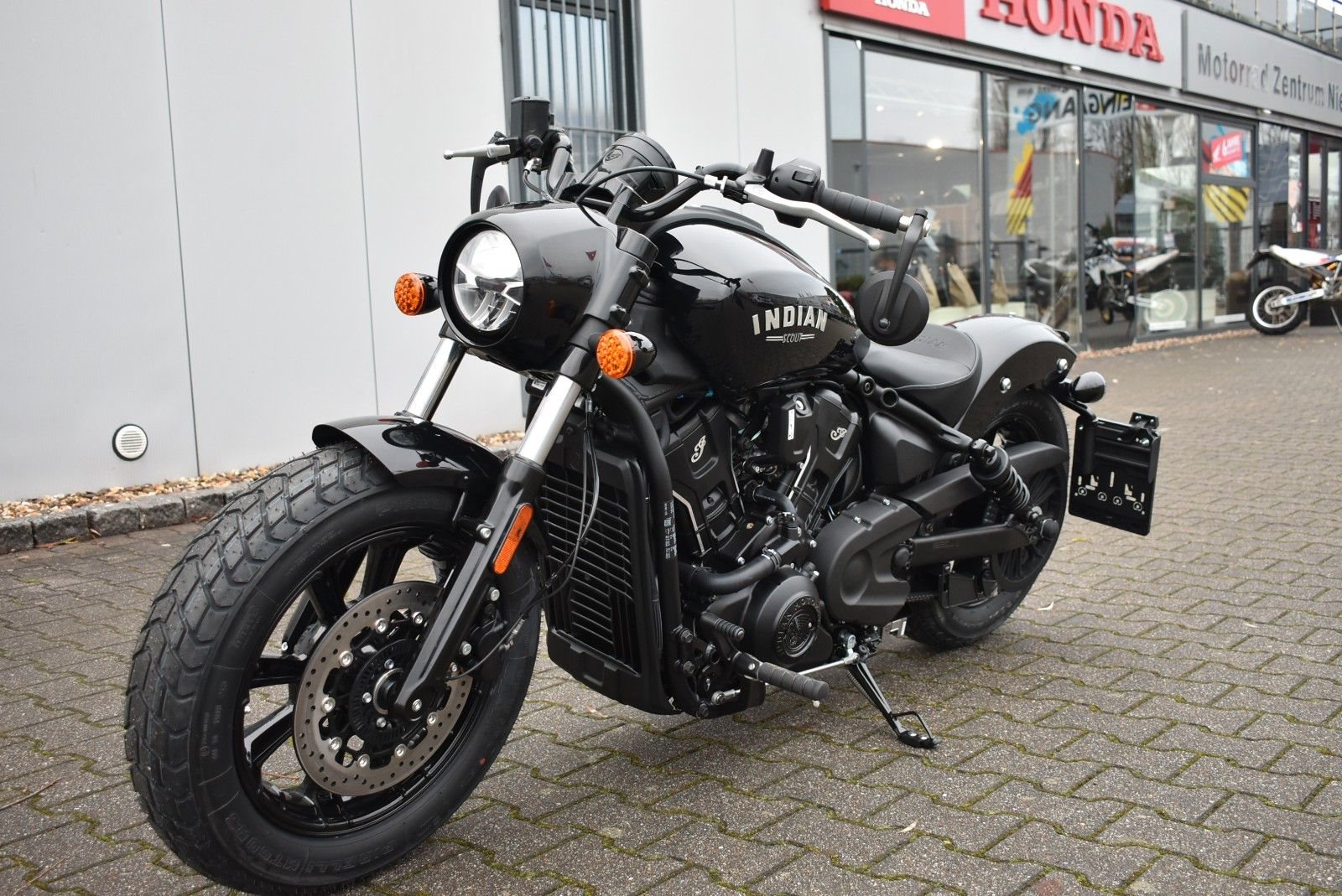Von vorne bis hinten geschwärzt, mit gechoppten Bobber-Kotflügeln und Scheinwerfergondel, lehnt sich die Scout Bobber hart an den authentischen Bobber-Stil an.