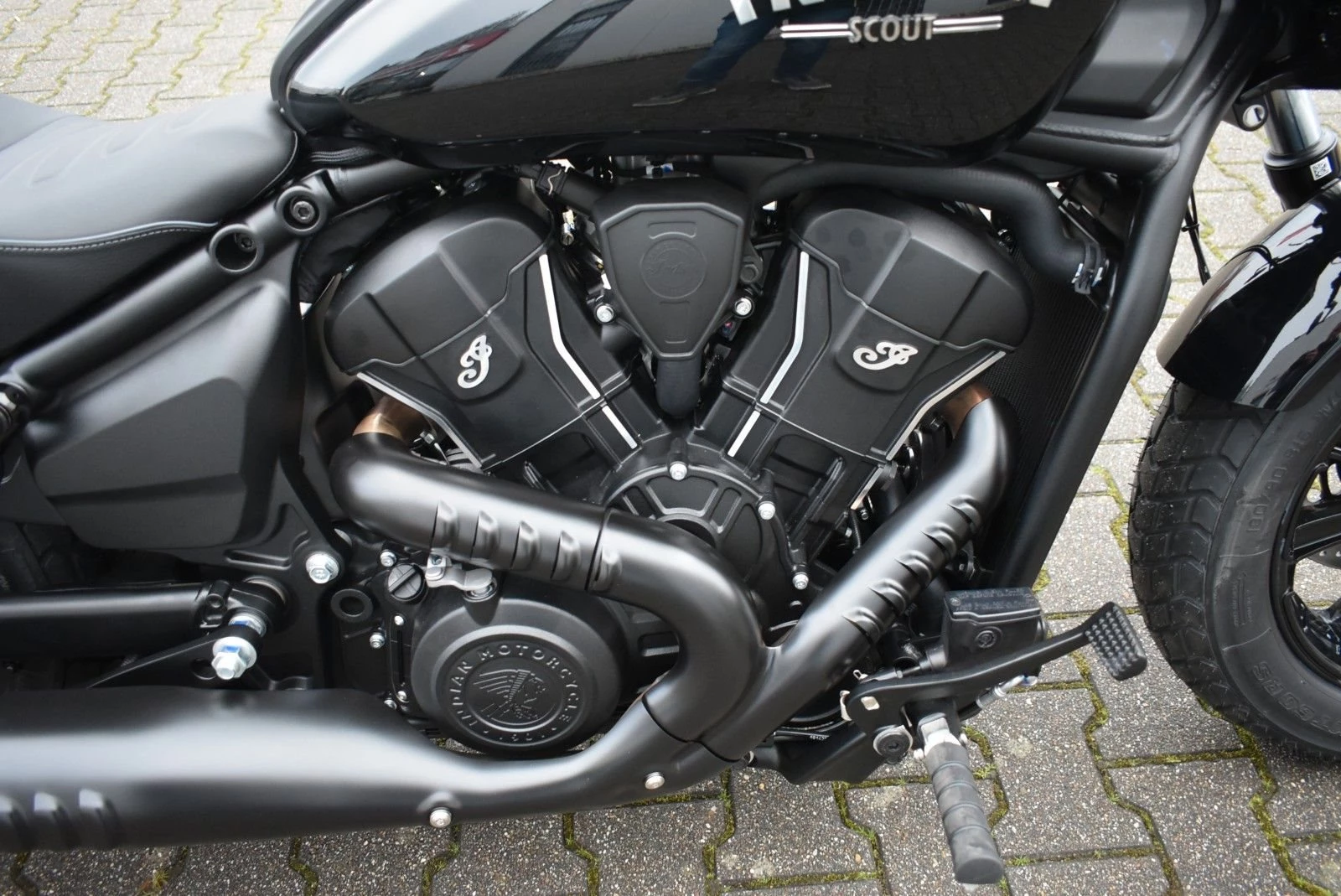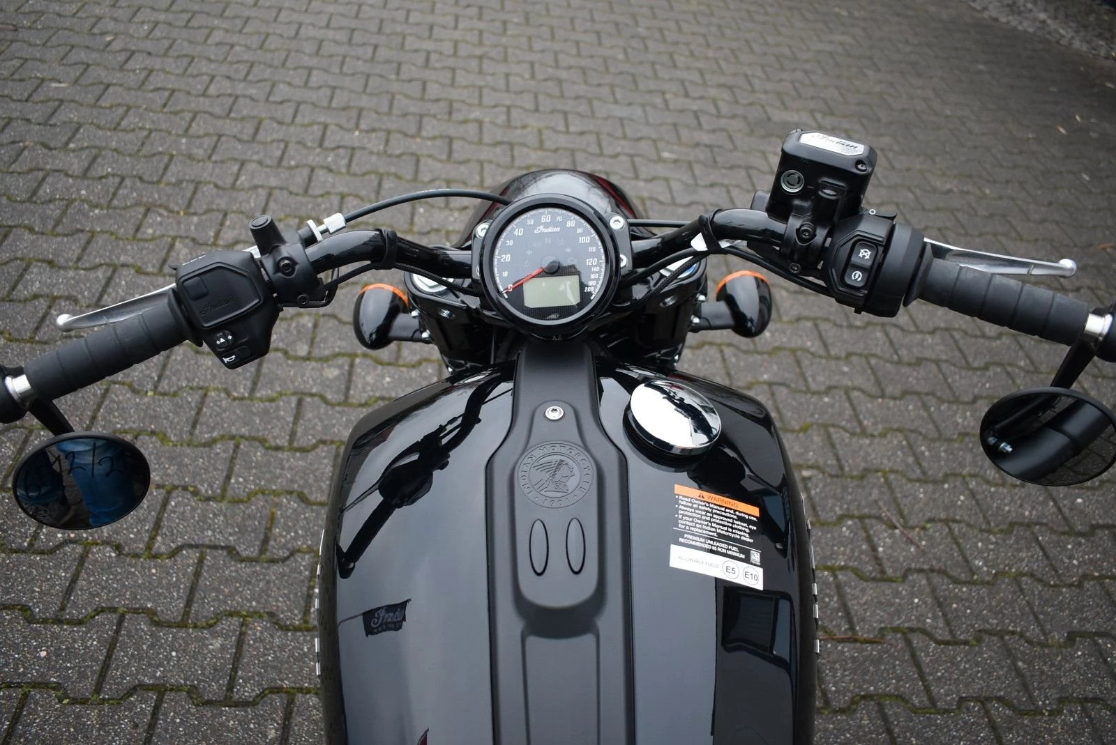 Von vorne bis hinten geschwärzt, mit gechoppten Bobber-Kotflügeln und Scheinwerfergondel, lehnt sich die Scout Bobber hart an den authentischen Bobber-Stil an.