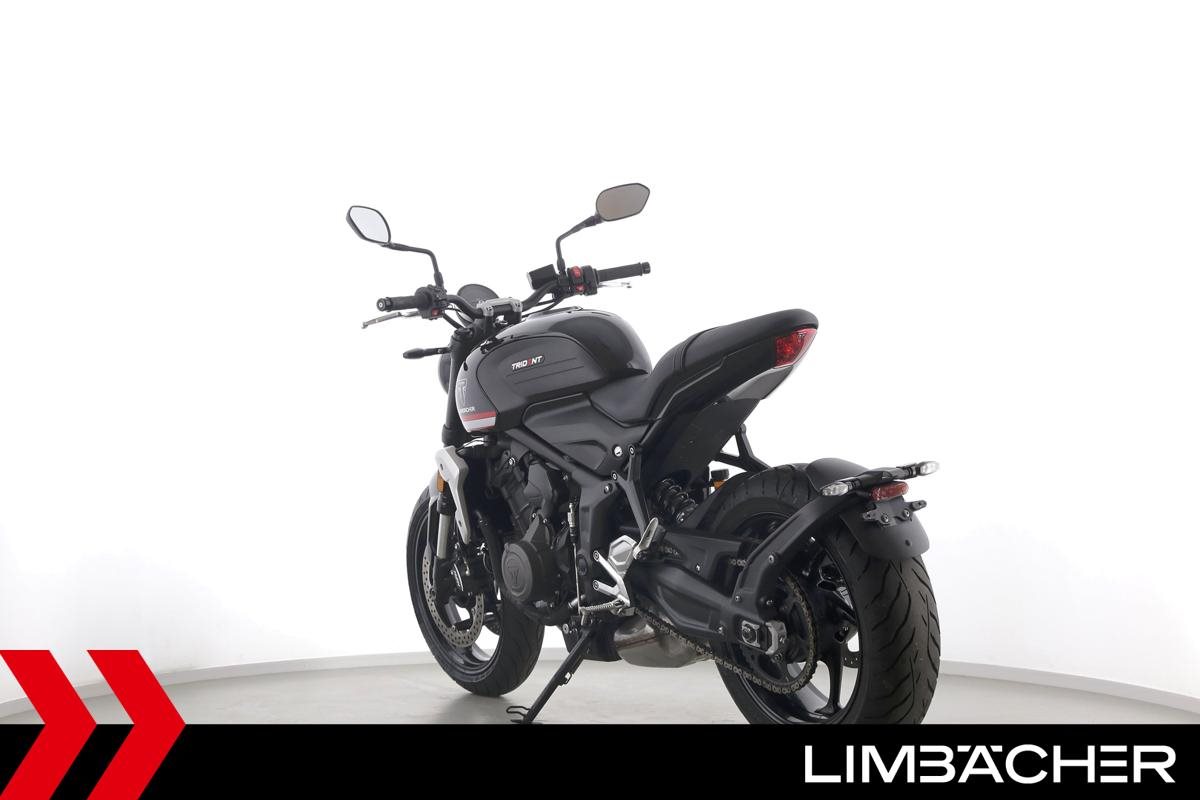 Eine scheckheftgepflegte Triumph Trident 660 aus zweiter Hand in sehr gepflegtem Zustand mit Quickshifter.