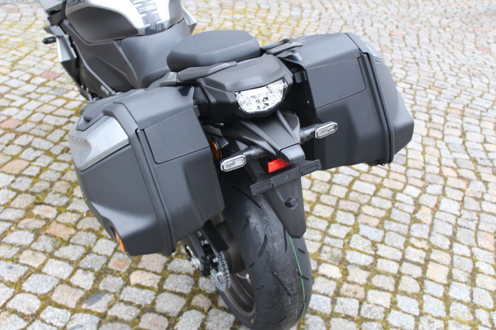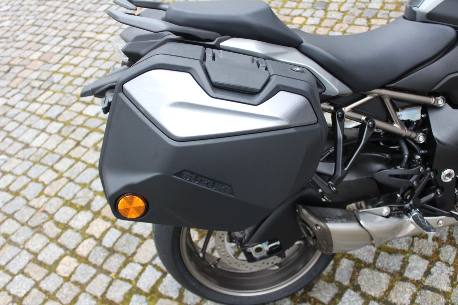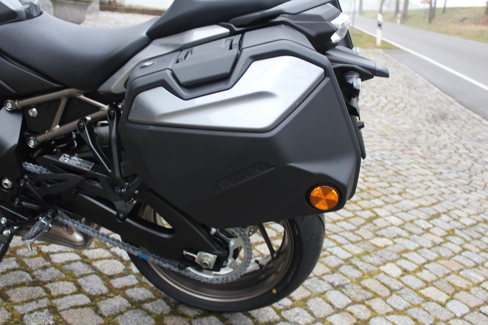 - incl. 1 Satz original Suzuki Seitenkoffer mit schwarzen Kofferblenden (Kofferblenden in Fahrzeugfarbe lackiert kosten Aufpreis - wie auf Bild)