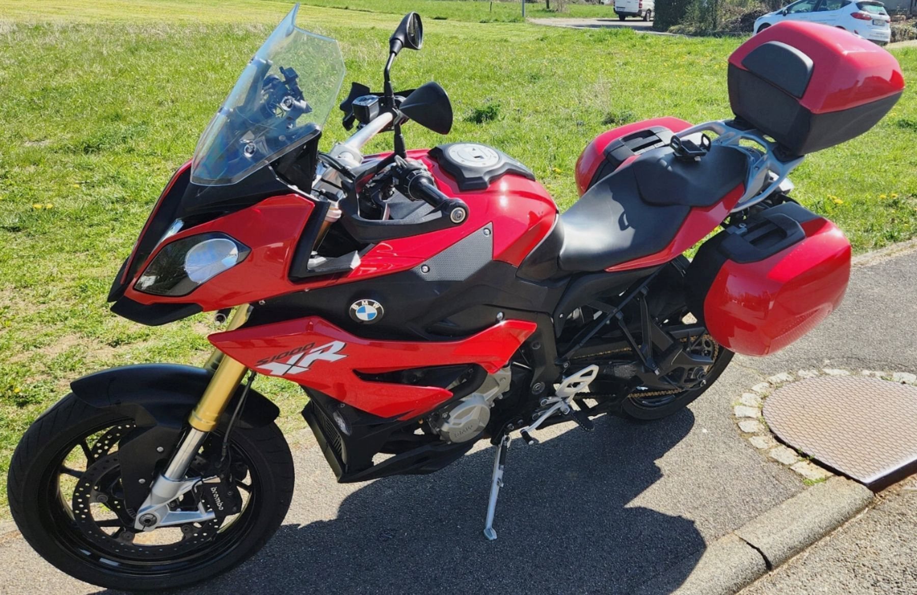 Meine S1000XR hat alle Ausstattung, die möglich ist. Z.B. Schaltautomat, Tempomat, Navi-Vorbereitung, Hauptständer, original BMW-Koffer und -Topcase (gleichschließend und in Motorradfarbe), TÜV, doppelter USB-Anschluss, Scott-Oiler, Kette mit ca. 5000 km, Reifen neu usw.