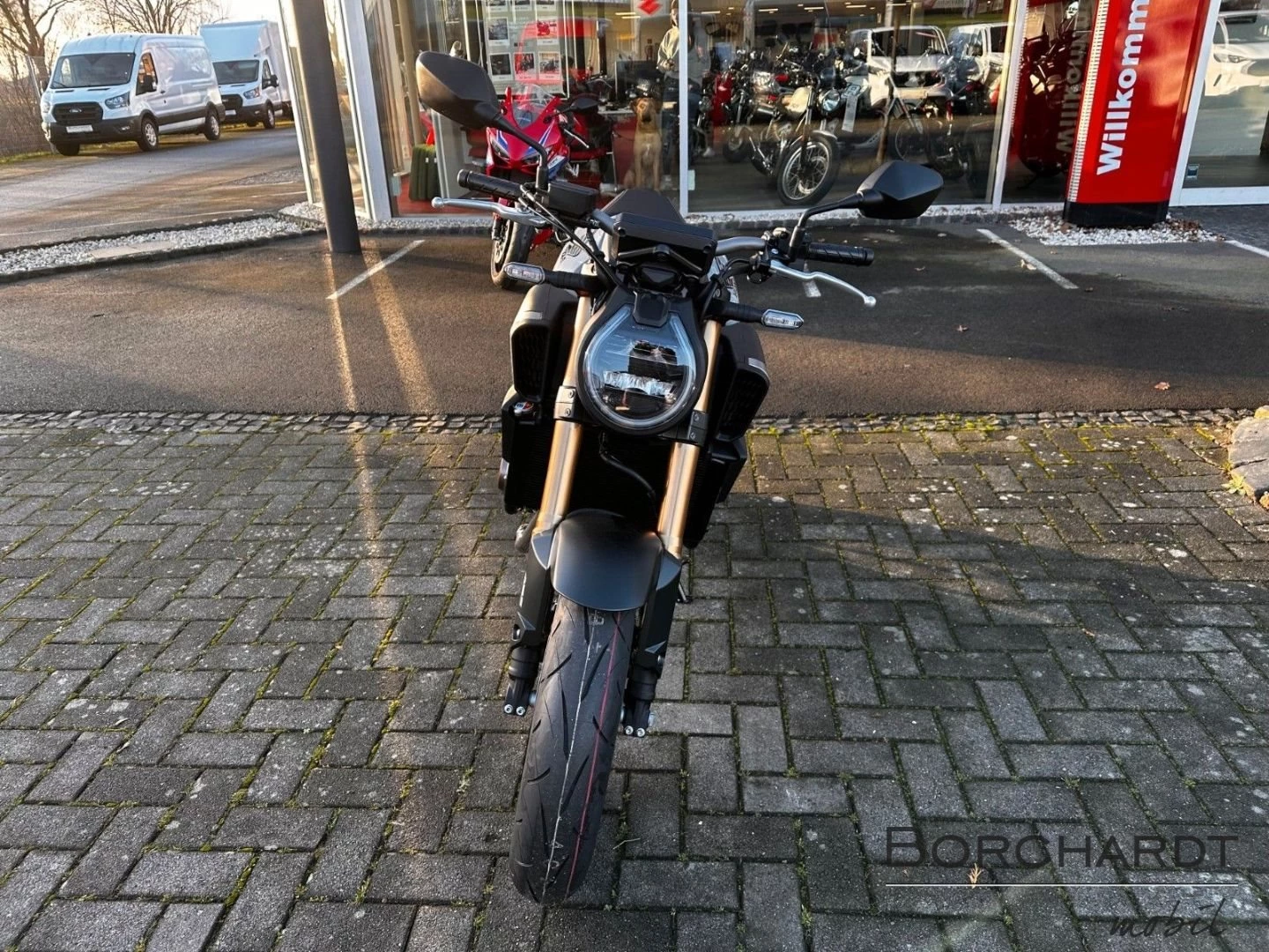 Vierzylindermagie pur. Die aufs Wesentliche reduzierte CB650R überzeugt im Stadtverkehr und auf der Landstraße durch herausragende Beschleunigung, agile Leichtigkeit und das unverwechselbare, von der CB1000R inspirierte Neo Sports Café-Design.