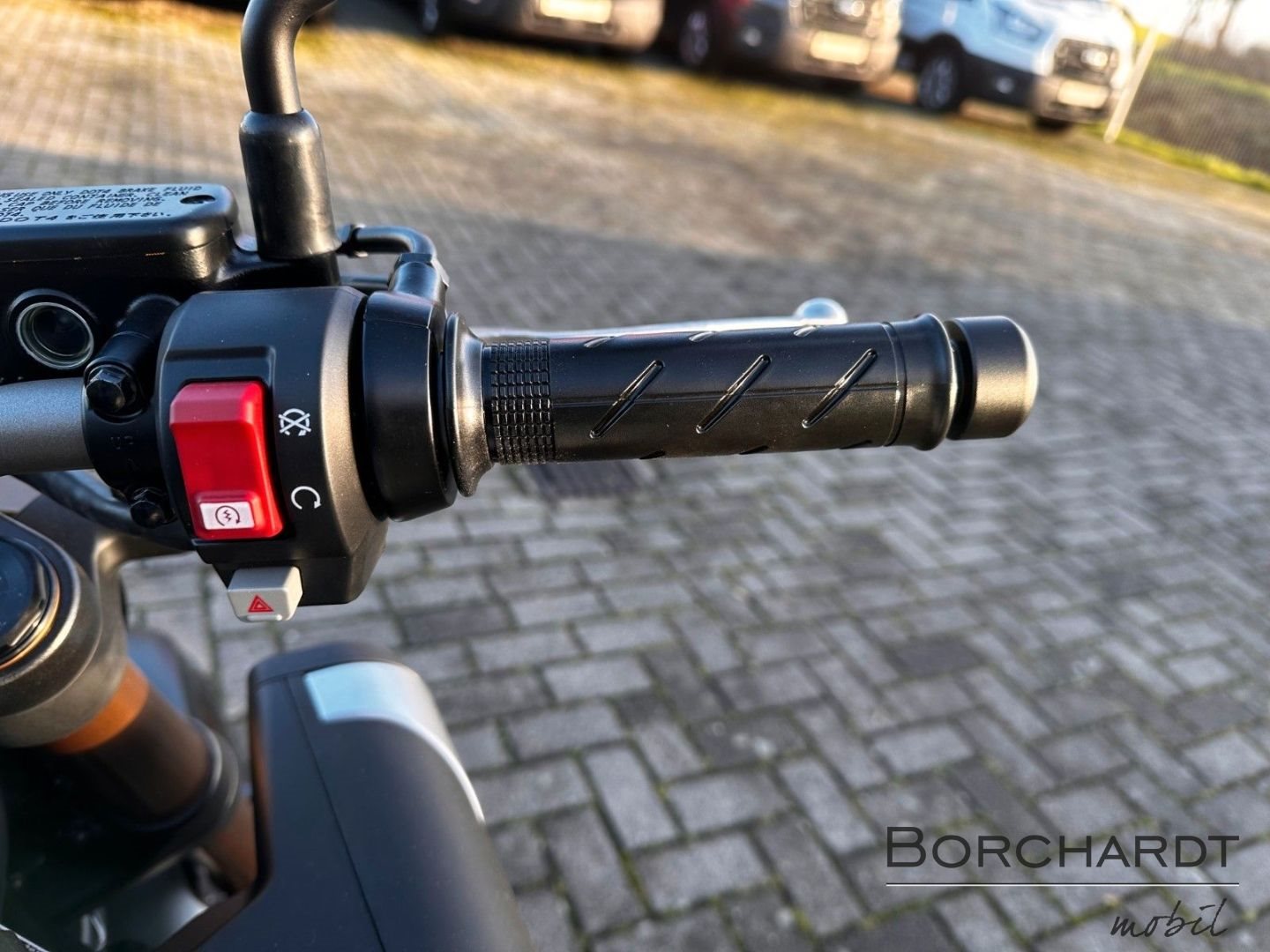 Dieses Motorrad hat alles, was du brauchst. Das brandneue 5-Zoll TFT-Farbdisplay mit hintergrundbeleuchteter Steuerung bei natürlicher Handhaltung am Lenker lässt sich unter allen Bedingungen klar ablesen. Bei beiden Komponenten wurde höchster Wert auf Bedienkomfort gelegt und das Display verfügt über eine Anti-Blende-Beschichtung. Außerdem ist für umfassende Konnektivität über die Honda RoadSync App gesorgt. Du erhältst per Android- und iOS-Smartphones Zugriff auf Turn-by-Turn-Bildschirmnavigation. Außerdem kannst du Anrufe tätigen und entgegennehmen oder Musik hören.