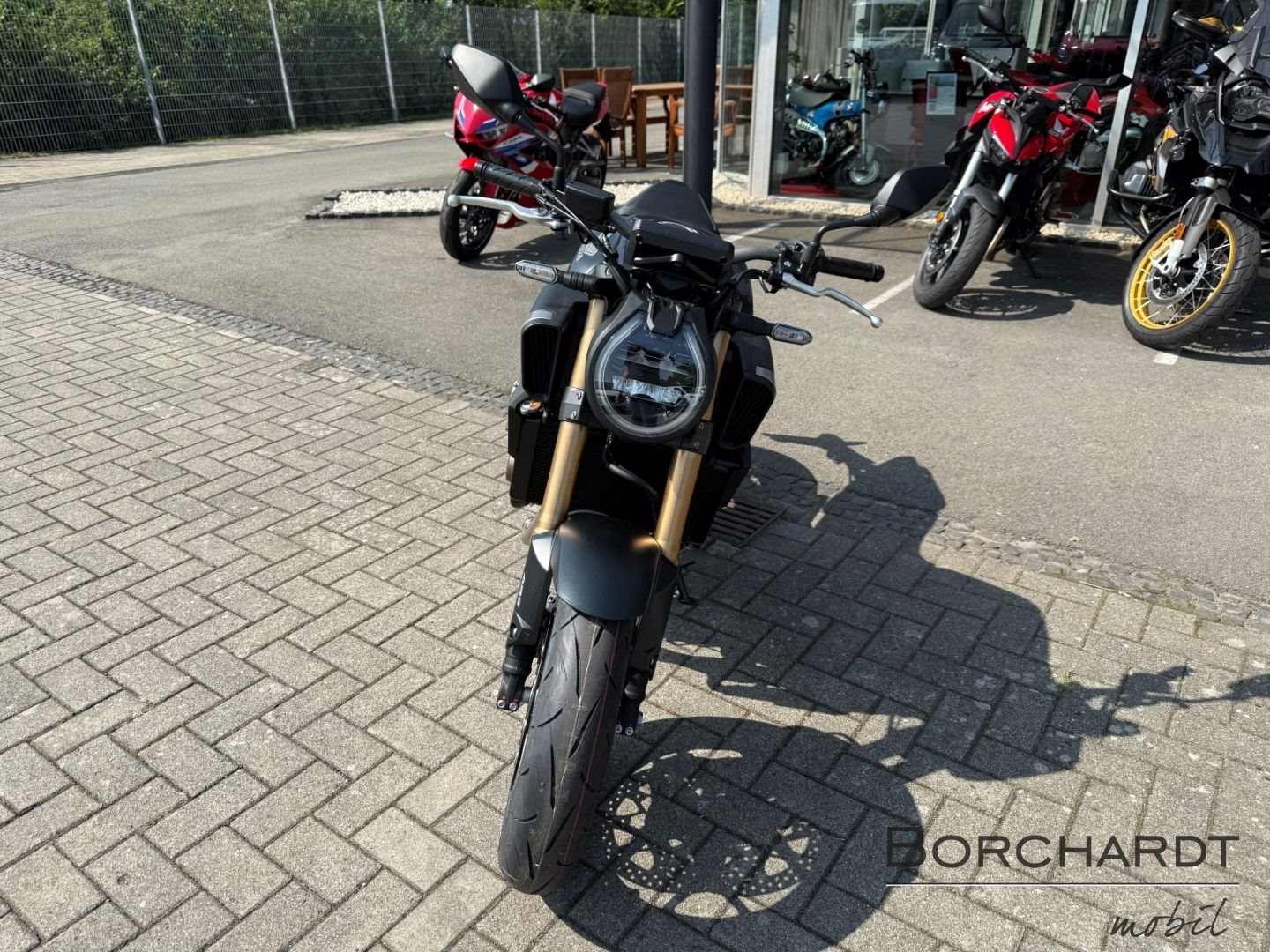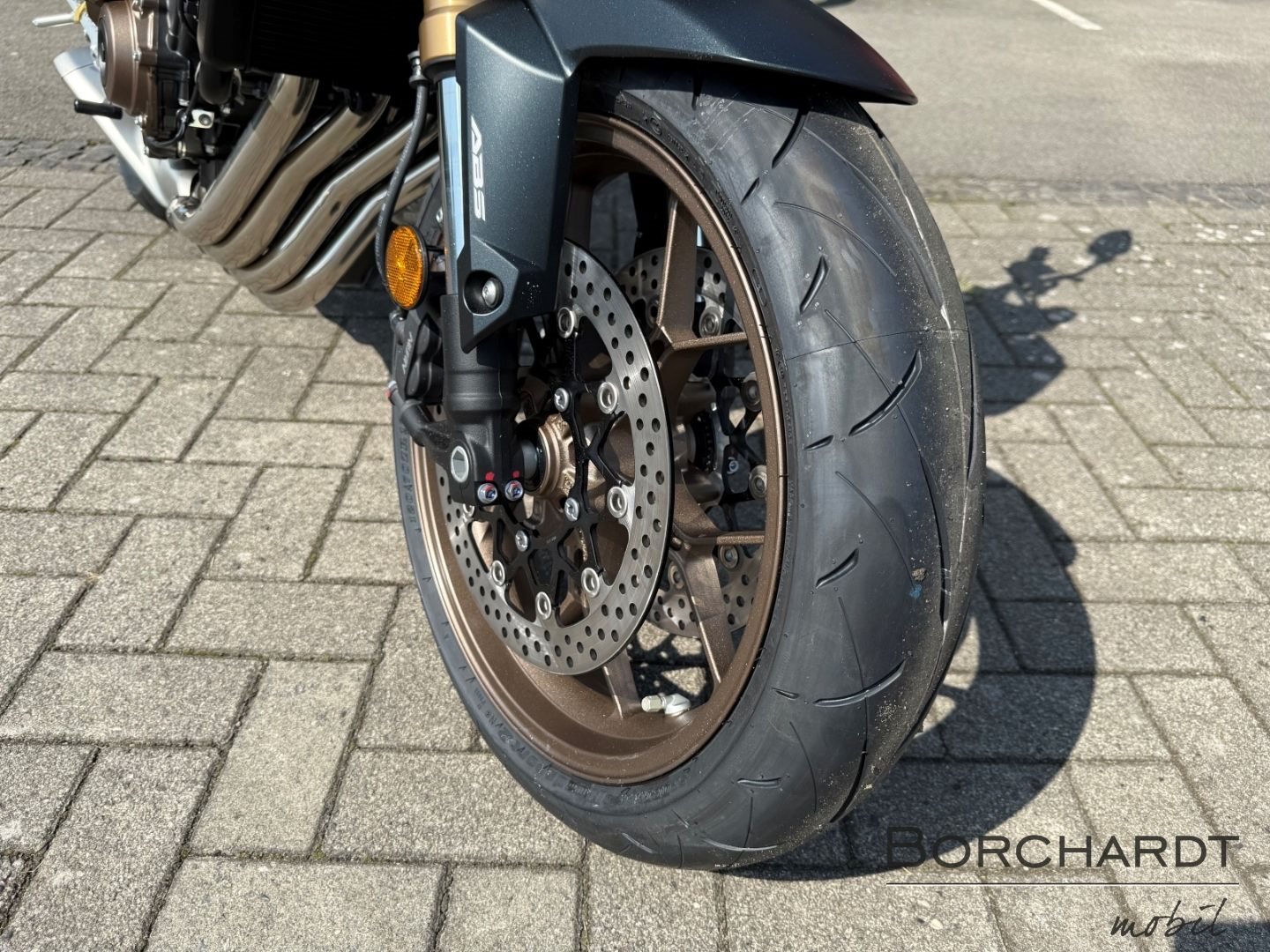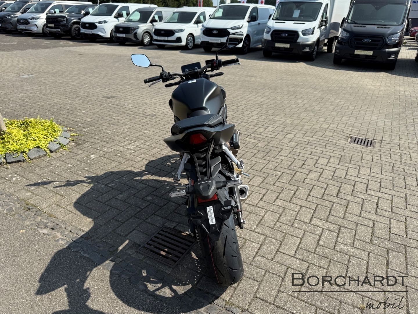 Du hast es in der Hand. Der DOHC-Vierzylinder-Reihenmotor leistet in der Spitze 70 kW (95,2 PS) - der rote Bereich beginnt bei 12.000 U/min - und bietet ein Drehmoment von 63 Nm. Honda Händler können das Bike für alle mit A2-Führerschein auf 35 kW drosseln und die Drosselung entfernen, sobald ein A-Führerschein vorgelegt werden kann. Da Leistung Kontrolle braucht, verhindert die Anti-Hopping-Kupplung das Blockieren des Hinterrads bei starkem Bremsen und Herunterschalten. Das Notbremssignal (ESS) wird bei Vollbremsungen aktiviert und sorgt so für bessere Sichtbarkeit auf der Straße.