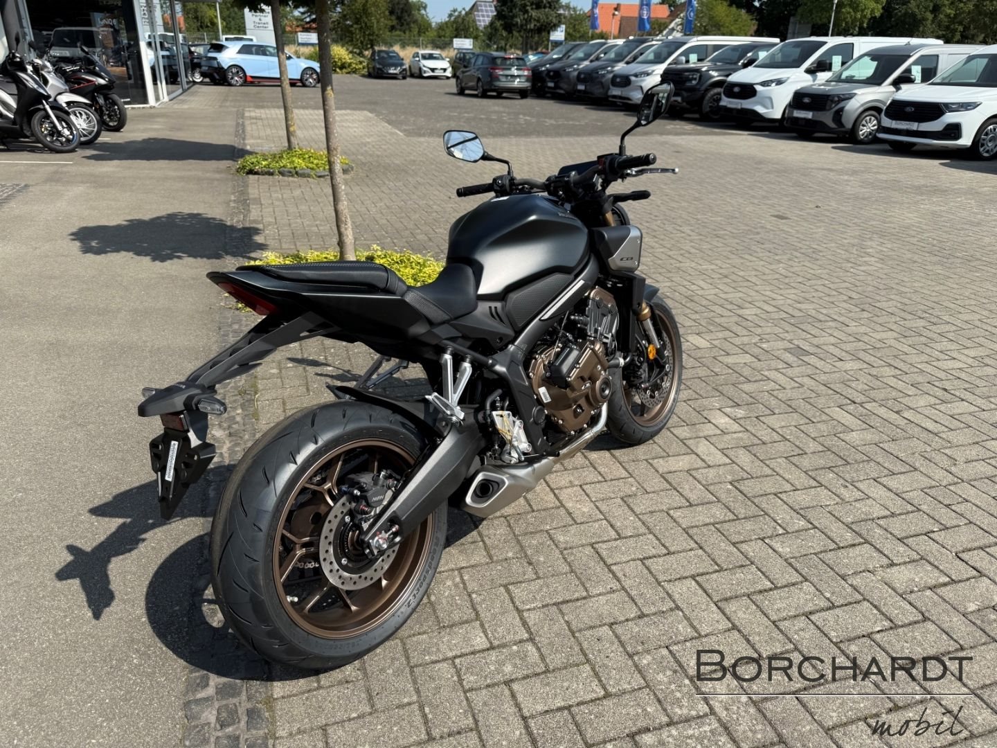 Vierzylindermagie pur. Die aufs Wesentliche reduzierte CB650R überzeugt im Stadtverkehr und auf der Landstraße durch herausragende Beschleunigung, agile Leichtigkeit und das unverwechselbare, von der CB1000R inspirierte Neo Sports Café-Design. Hinzu kommen erstklassige Technik und das herausragende als Sonderausstattung erhältliche neue Honda E-Clutch.