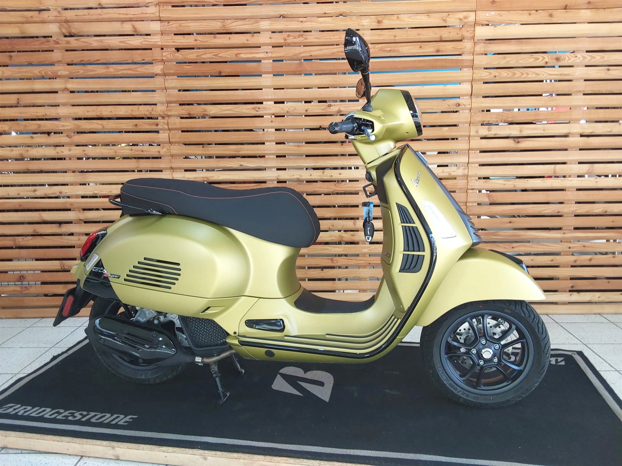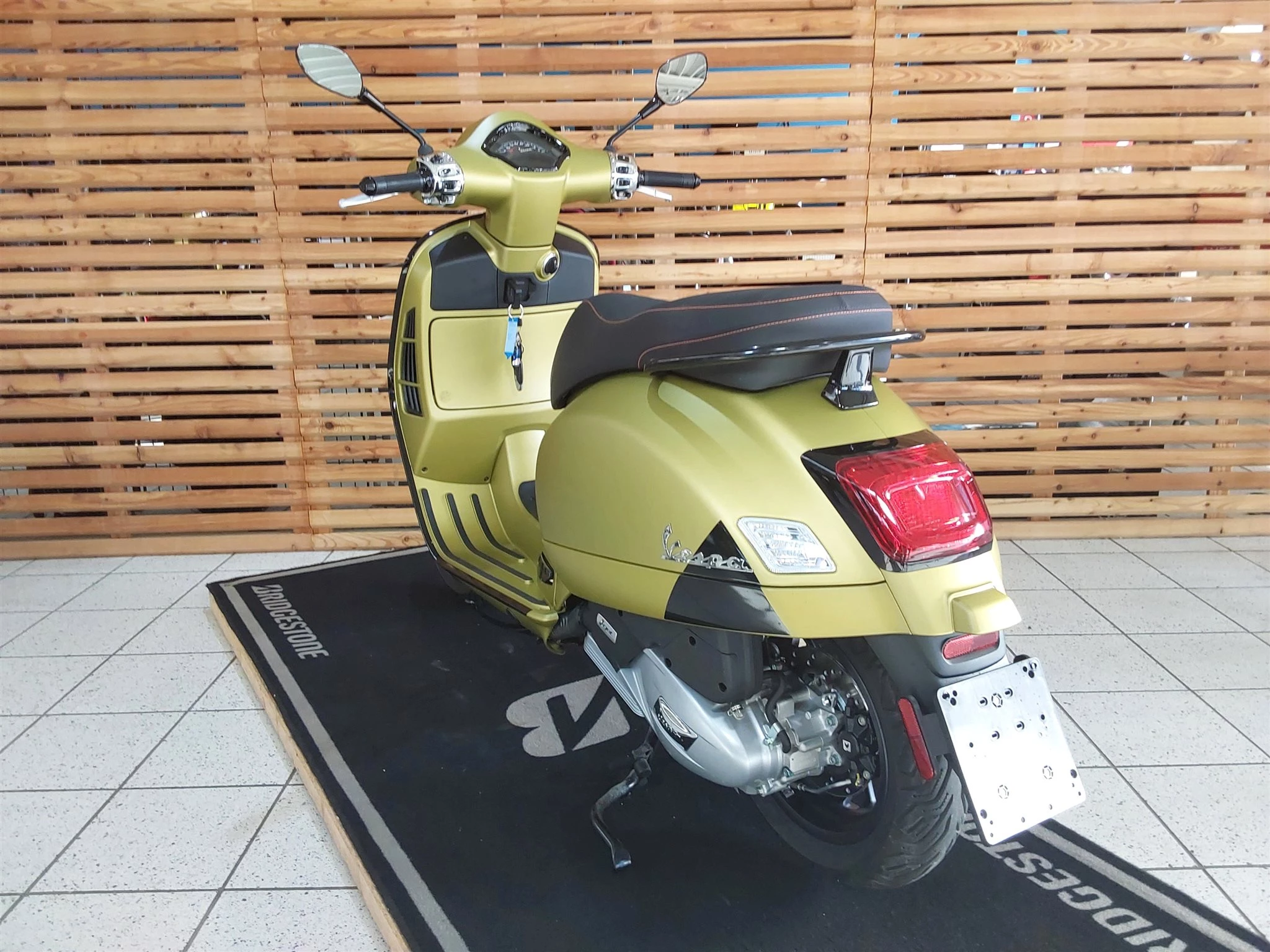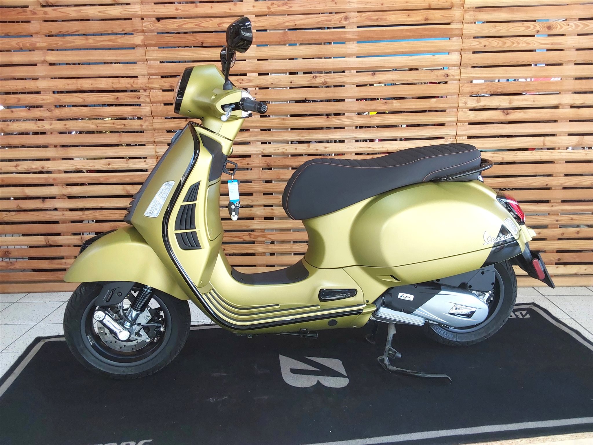 Die Vespa GTS Super Sport überzeugt durch ihre glänzenden und matten Farben, die durch Details im Carbon-Look und glänzend schwarze Zierleisten ergänzt werden. Die Sitzbank mit hochwertigen Materialien und Kontrastnähten unterstreicht ihren starken Charakter. Mit der Vespa GTS Super Sport wird jeder Tag zu einem aufregenden Abenteuer.