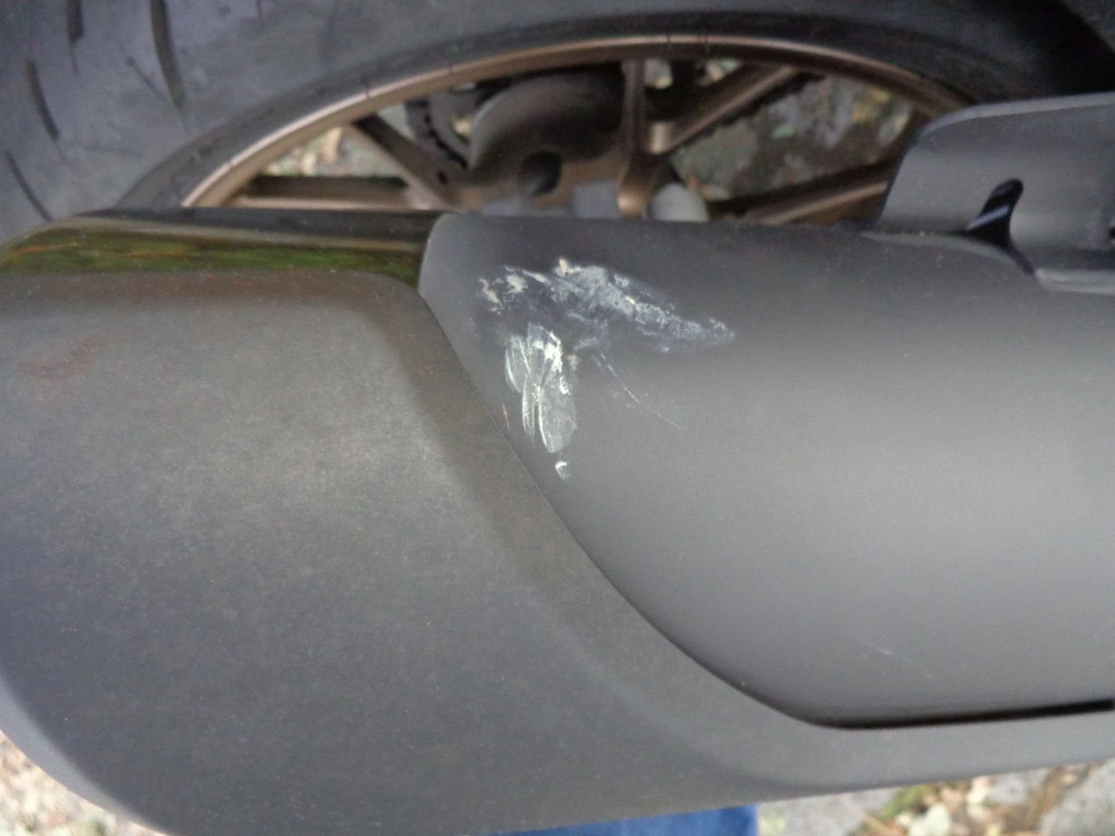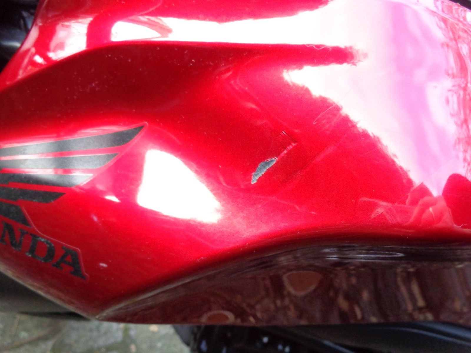 Das Fahrzeug ist auf die linke Seite gefallen. Die technisch notwendigen Reparaturen wurden von uns erledigt. Optisch ist noch ein Kratzter in der Tankverkleidung zu sehen, siehe Bild.