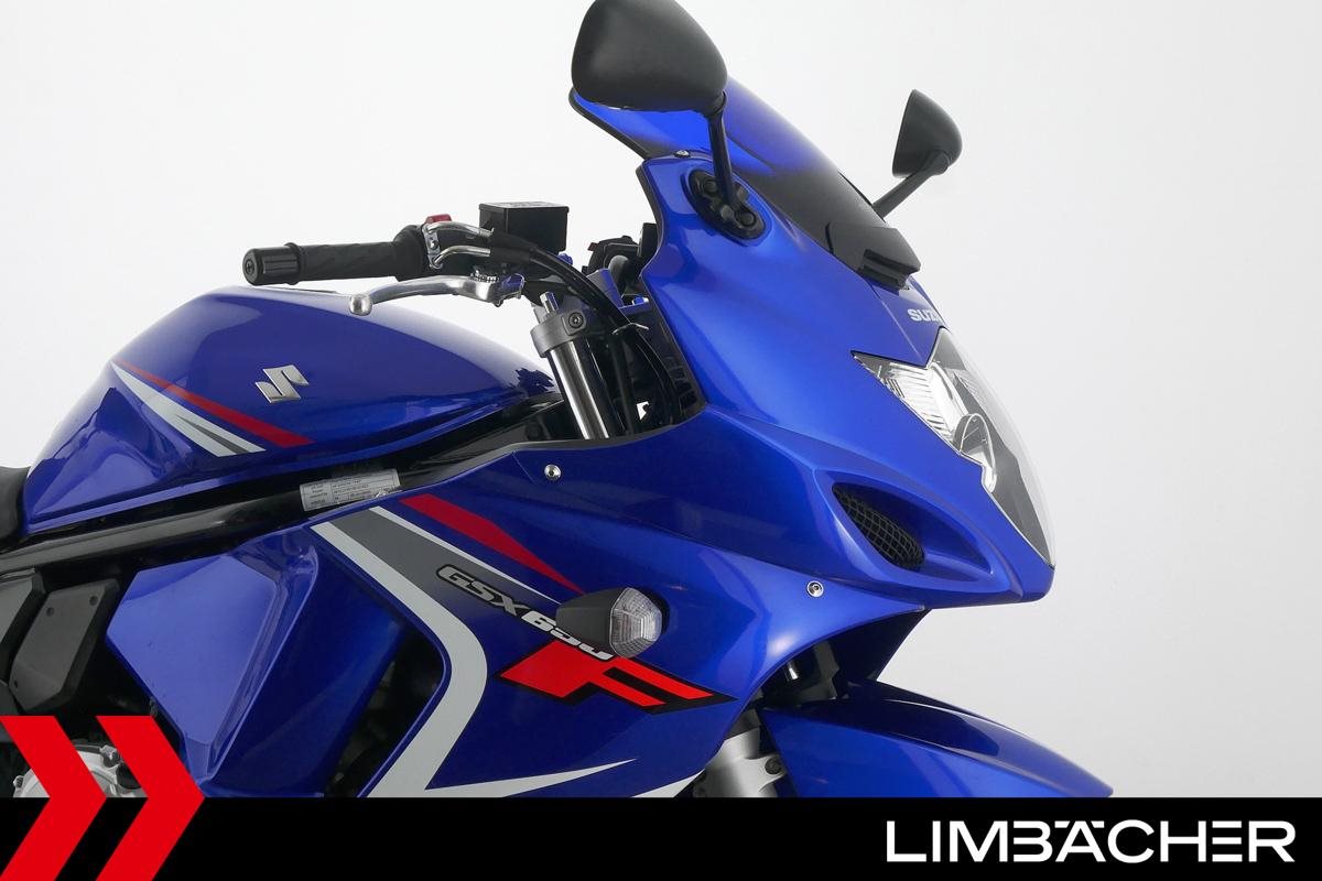 Eine Suzuki GSX 650 F in gepflegtem Zustand u.a. mit Originalausstattung und MRA-Sportscheibe blau.