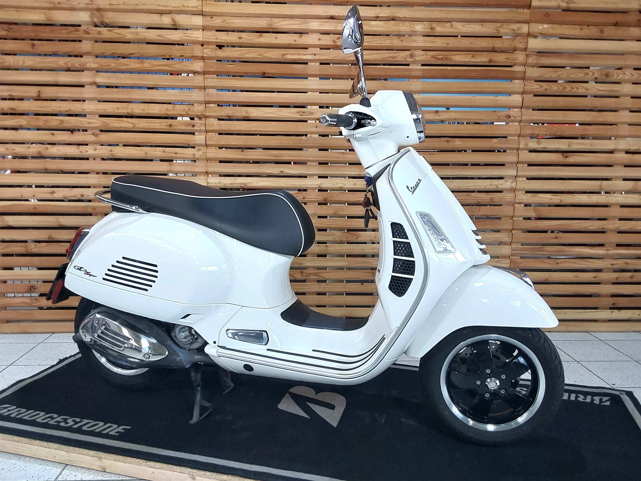 Die Vespa Gts ist bis ins kleinste Detail durchdacht. Die Metallic-Farben glänzen, Sitzbank und Interieur sind aufeinander abgestimmt, die Chromelemente sorgen für das gewisse Extra an Eleganz und natürlich trägt die berühmte Krawatte weiterhin zum Status der Vespa als zeitlose Ikone bei.